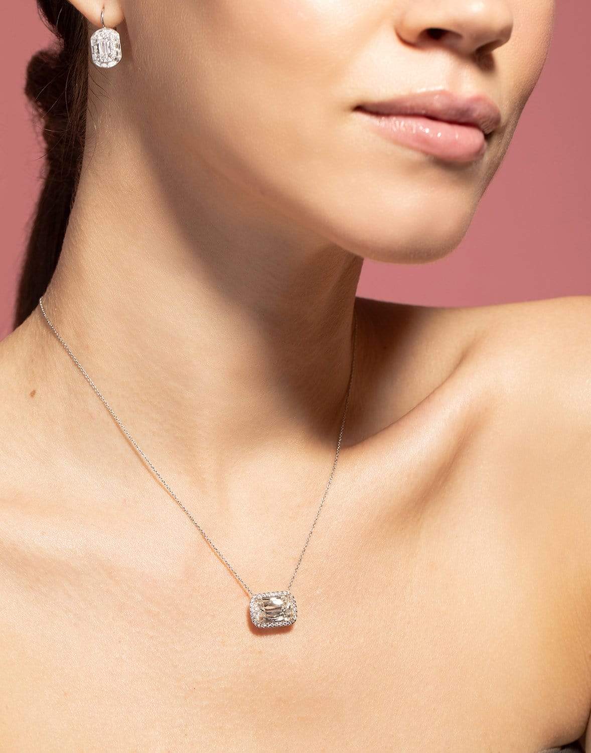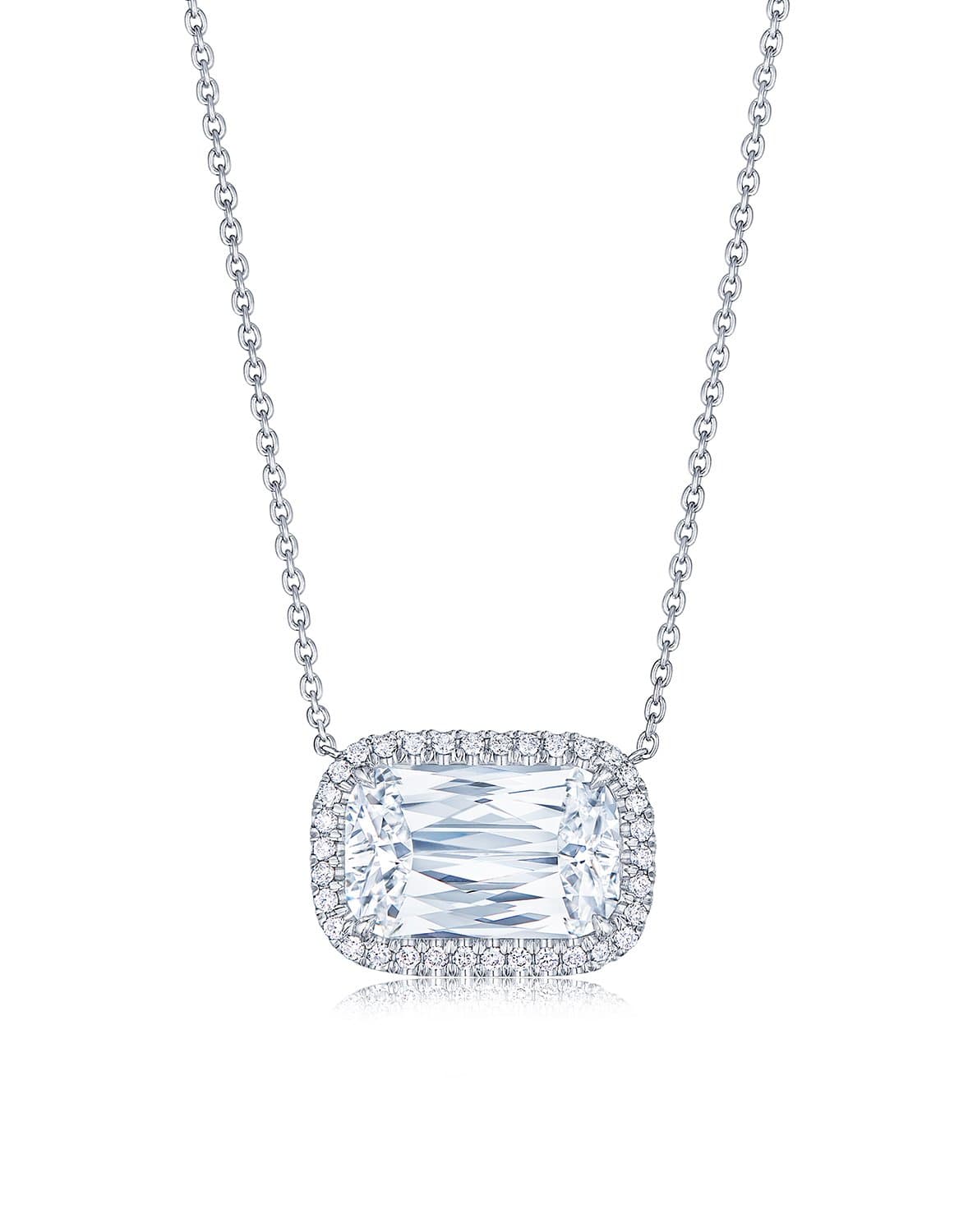 Kwiat Ashoka prong set east-west silhouette diamond pendant in platinum.