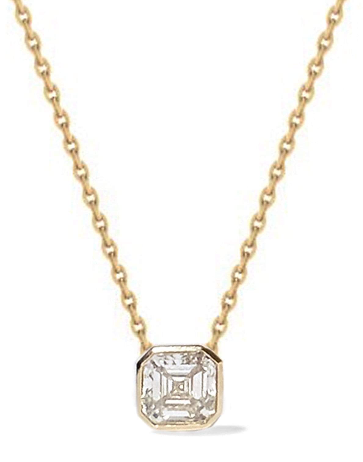 KATKIM Cosma pave necklace with asscher diamond pendant on a diamond cut cable chain.
