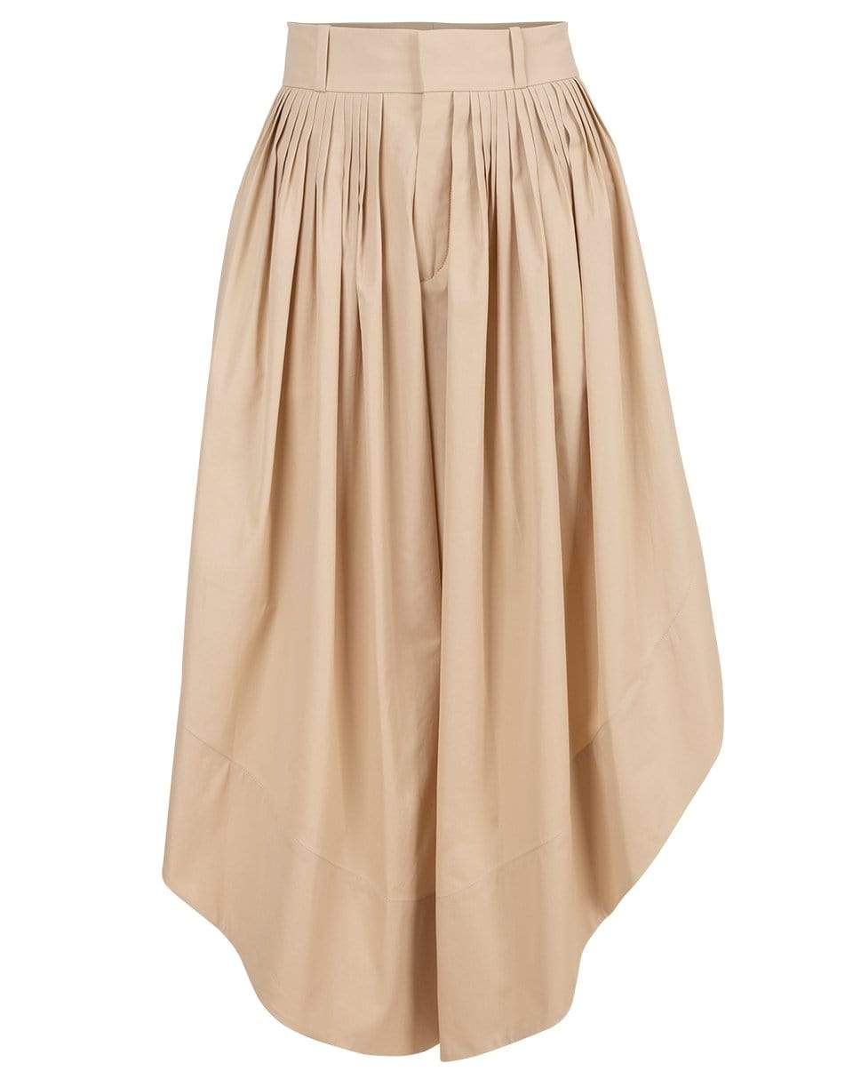 Chloe aysmmetrical drape trouser with a high waist, wide leg, zip fly, concealed tab closures, and side pockets.