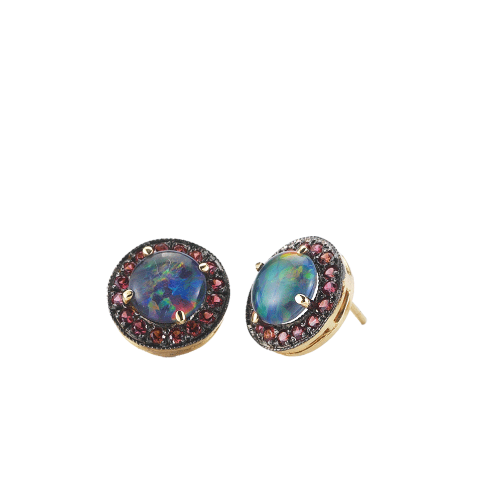 Australian Opal Doublets And Ruby Stud Earrings From Andrea Fohrman