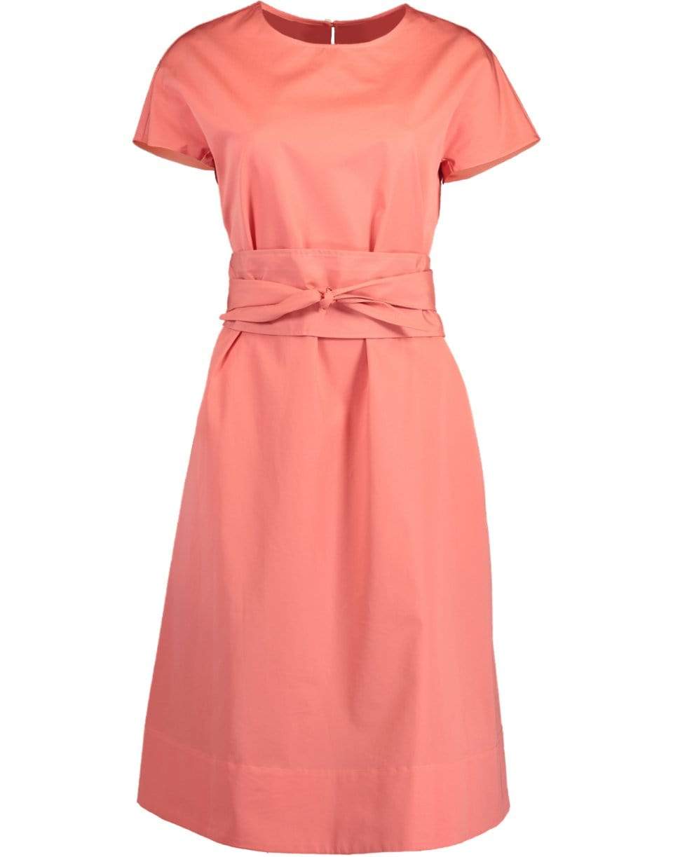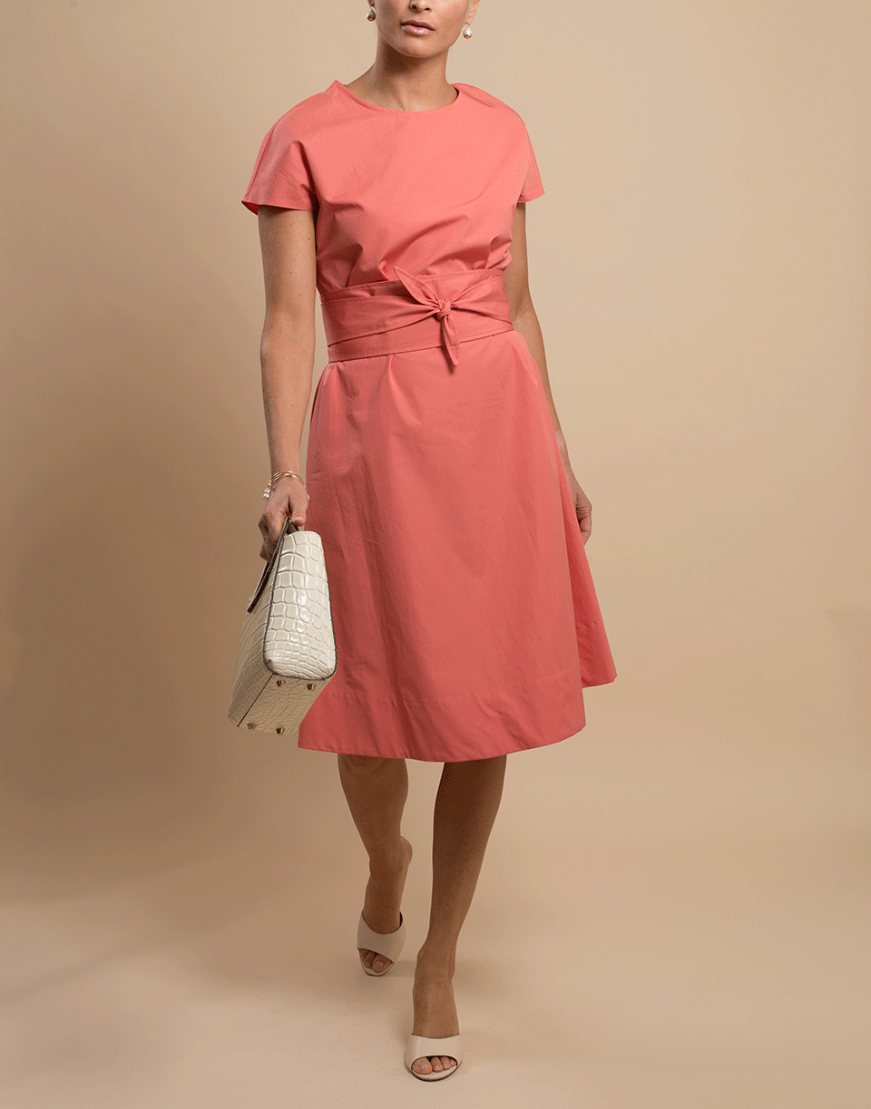 Aspesi azalea round neck dress with a regular fit, cap sleeves, side pockets, self belt, and a knee length.