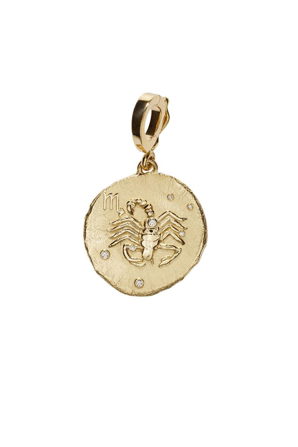 Azlee of the stars scorpio small coin charm in yellow gold.