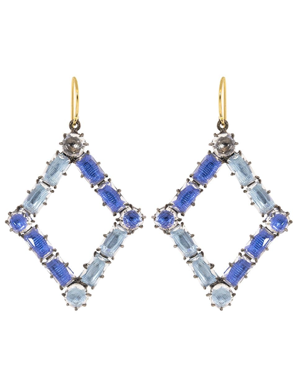Larkspur & Hawk Caterina Rhombus Earrings with black rhodium, washed sterling silver, and white quartz with chambray and azure foils. For pierced ears.