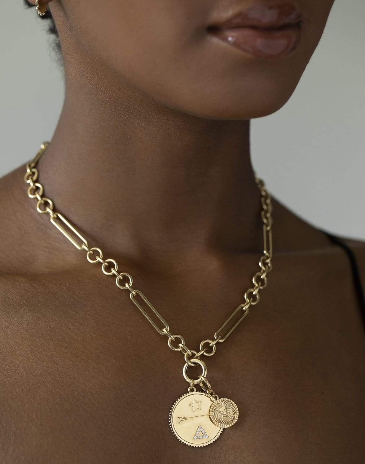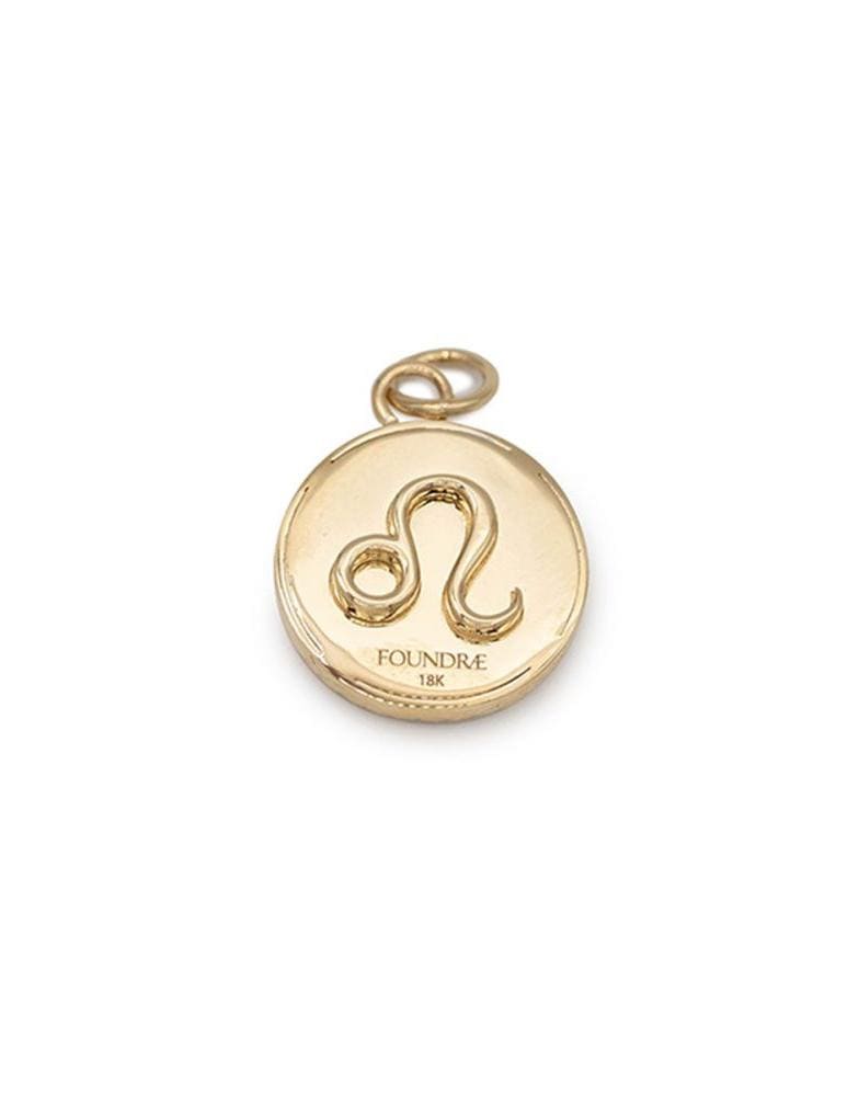 Foundrae baby leo medallion. The 18kt yellow gold Baby Medallion charm represents the Astrology Sign, Leo. Boundless, radiating energy, dramatic, expressive, fierce, warm, loyal, charismatic, dignified, generous, noble, loving, fearless, exuberant. The Ruling Planet is the Sun which commands a strong sense of self and vitality. Birthdays: July 23-August 22, Fire Element.