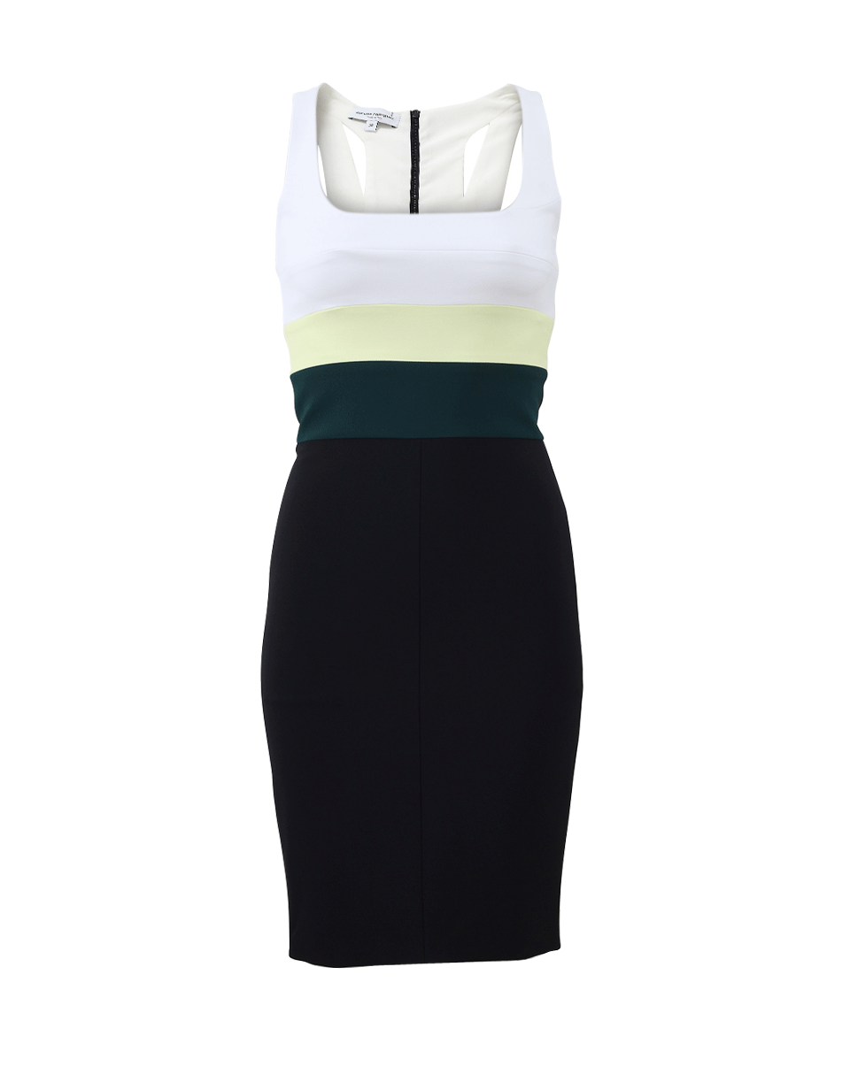 Racerback With Cutout Detail, Double Back Zip Closure For Vent Option, Slim-Fitting Silhouette, And Knee-Length Cut