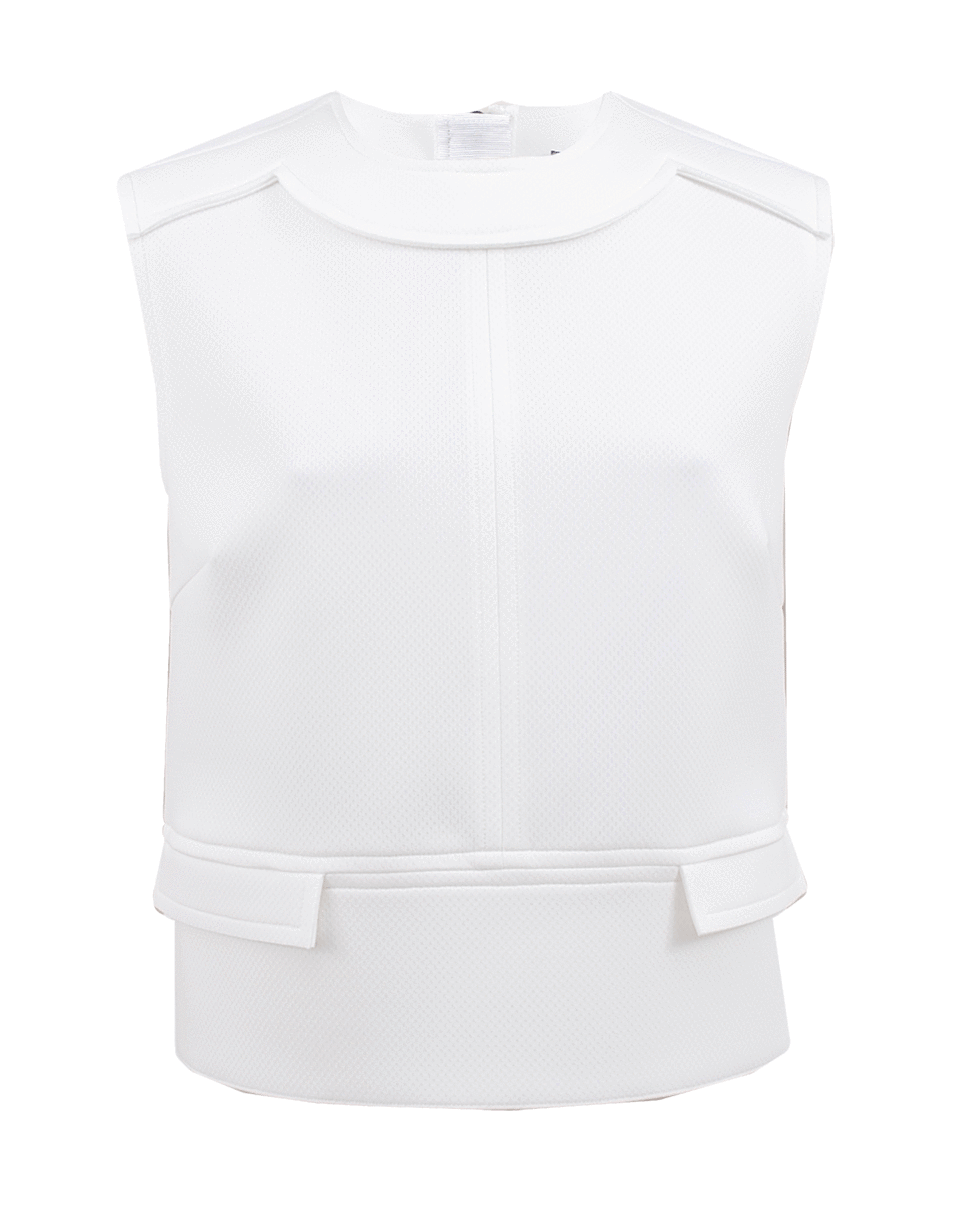 Structured and chic, Lanvin's back zip boxy crop top is modern sophistication. Pair with printed pants and ankle booties for a dinner date.
