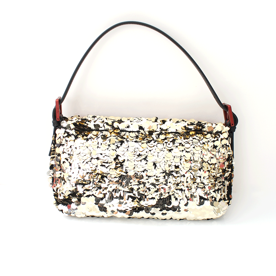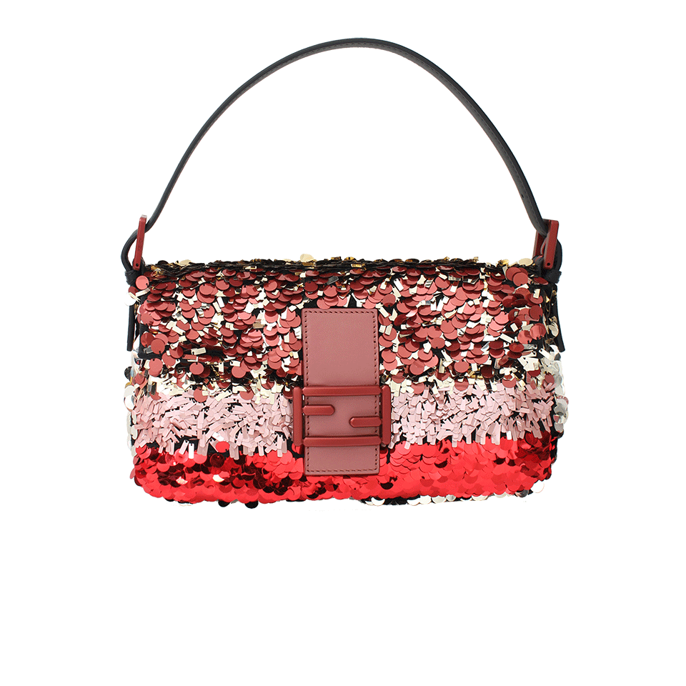 Magnetic Flap Front Closure With All-Over Sequin Embellishments And Red Matte Hardware
