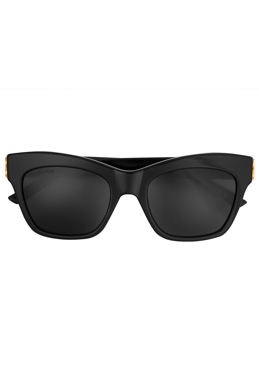 Balenciaga cat eye logo sunglasses in black/gold/gray.