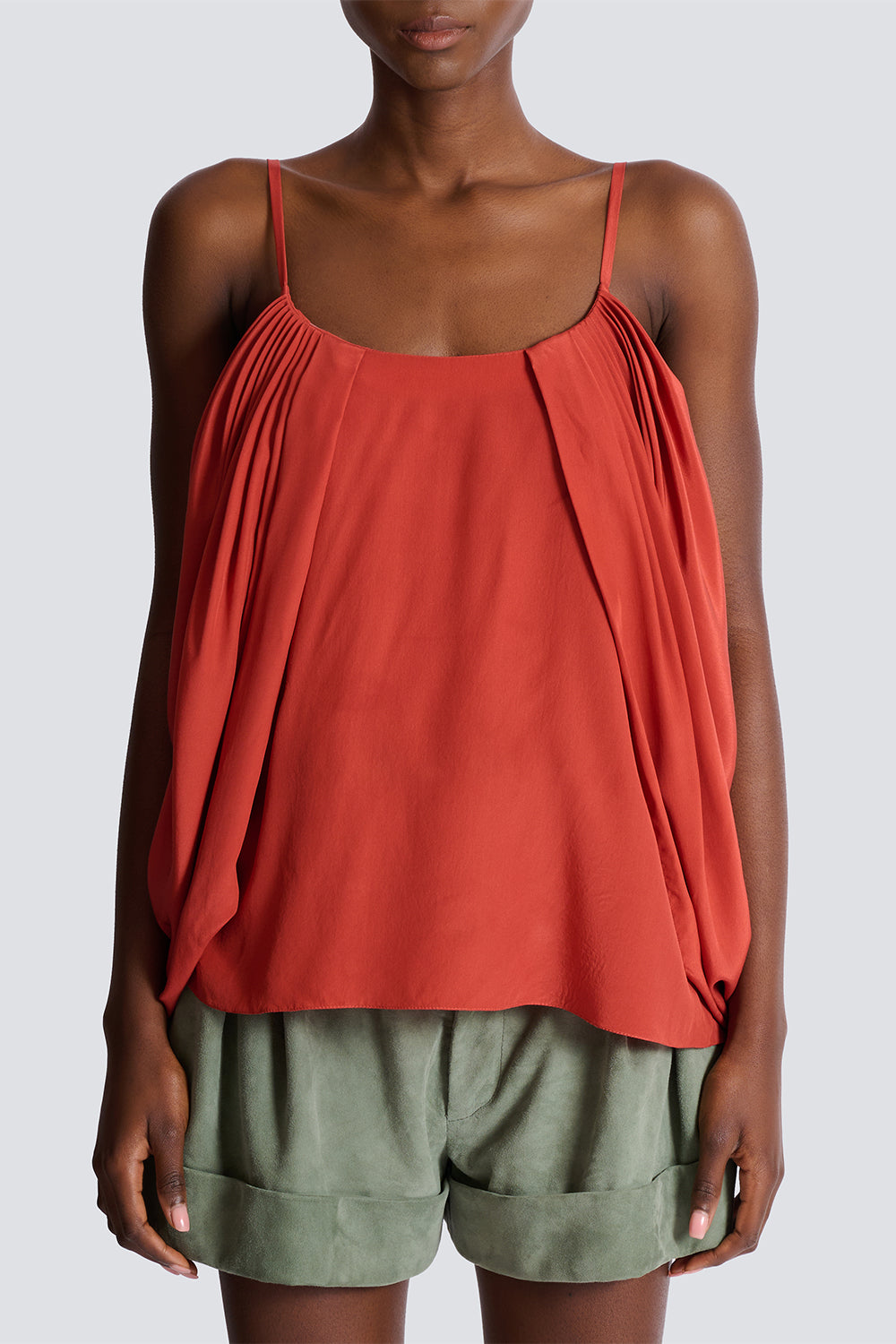 Balmain thin strap drape top in rouge ocre labdips lance le.