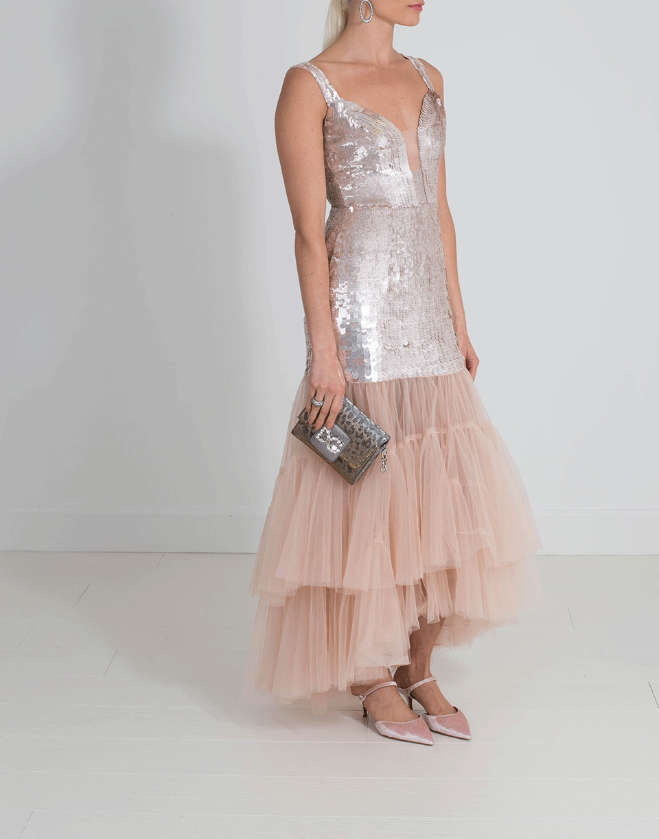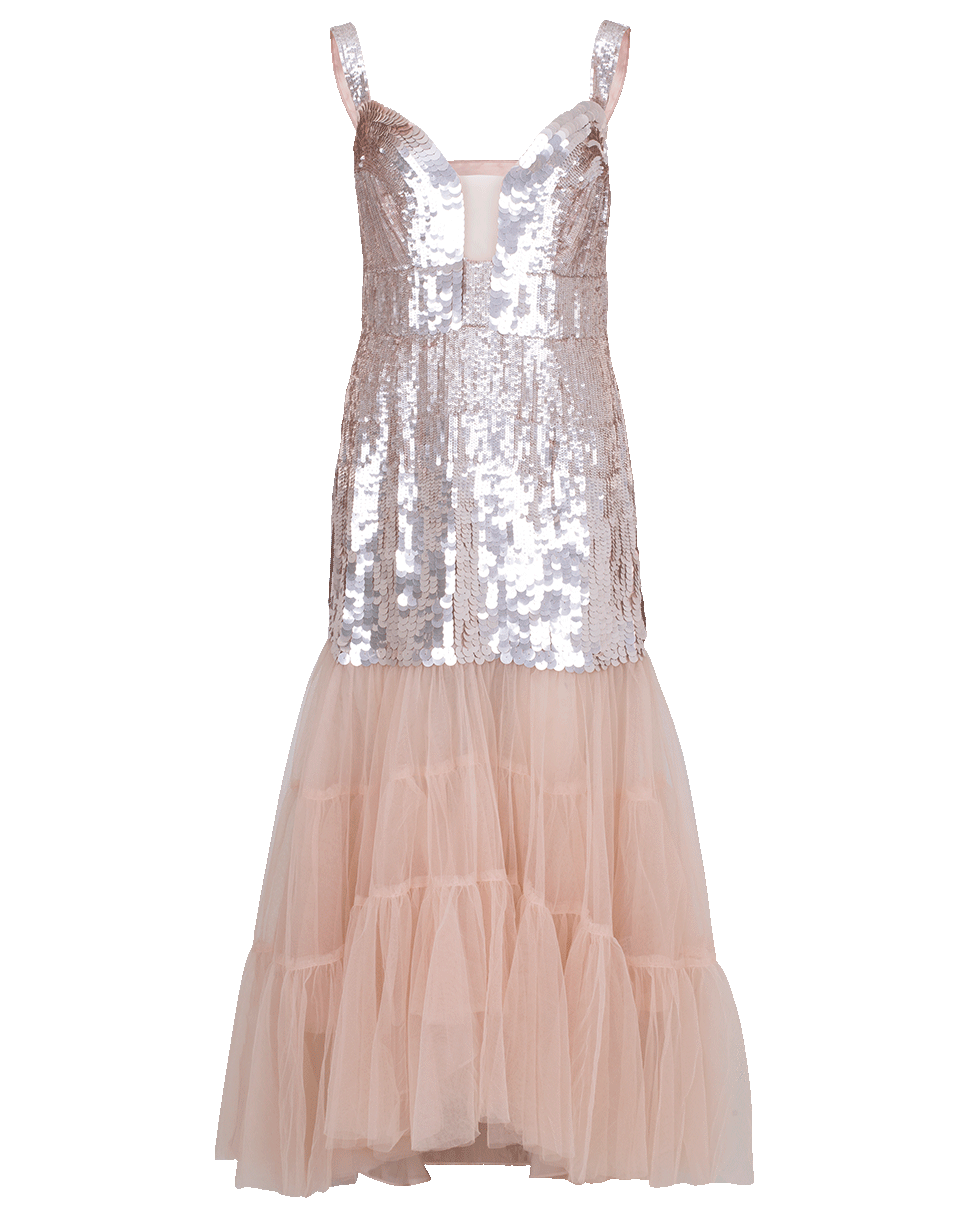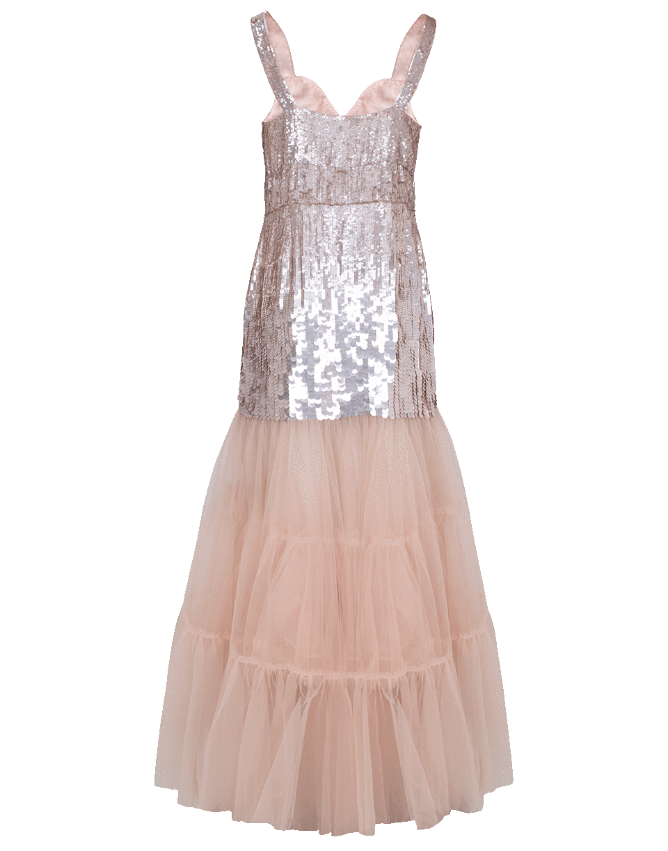 Sequin And Tulle Details With Loose Fitting Silhouette, Ankle Length Cut