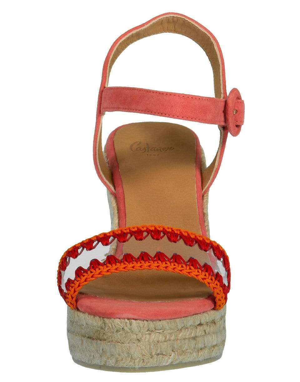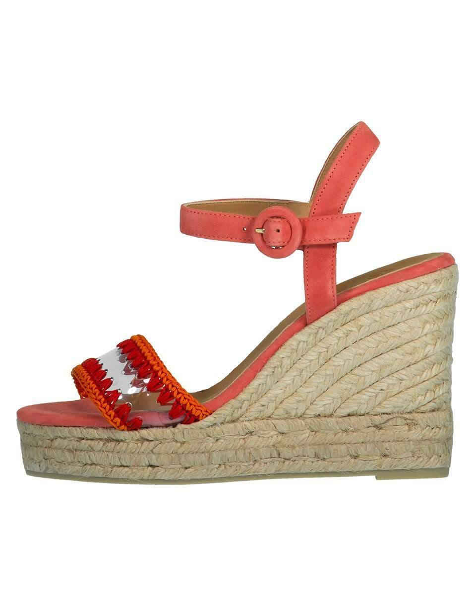 Castaner Baru natural jute and suede wedge espadrilles with an open toe, ankle buckle closure, and woven detail.
