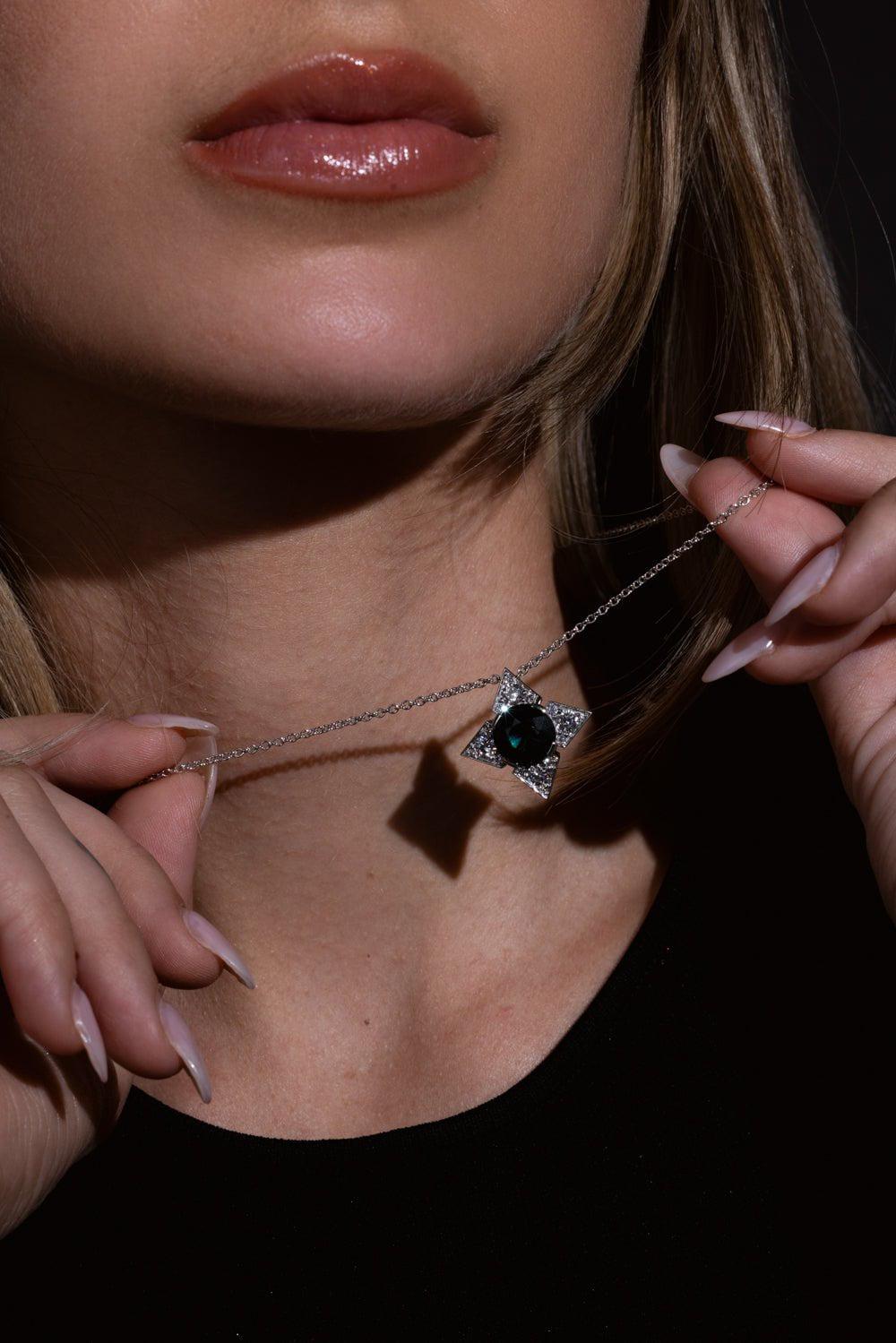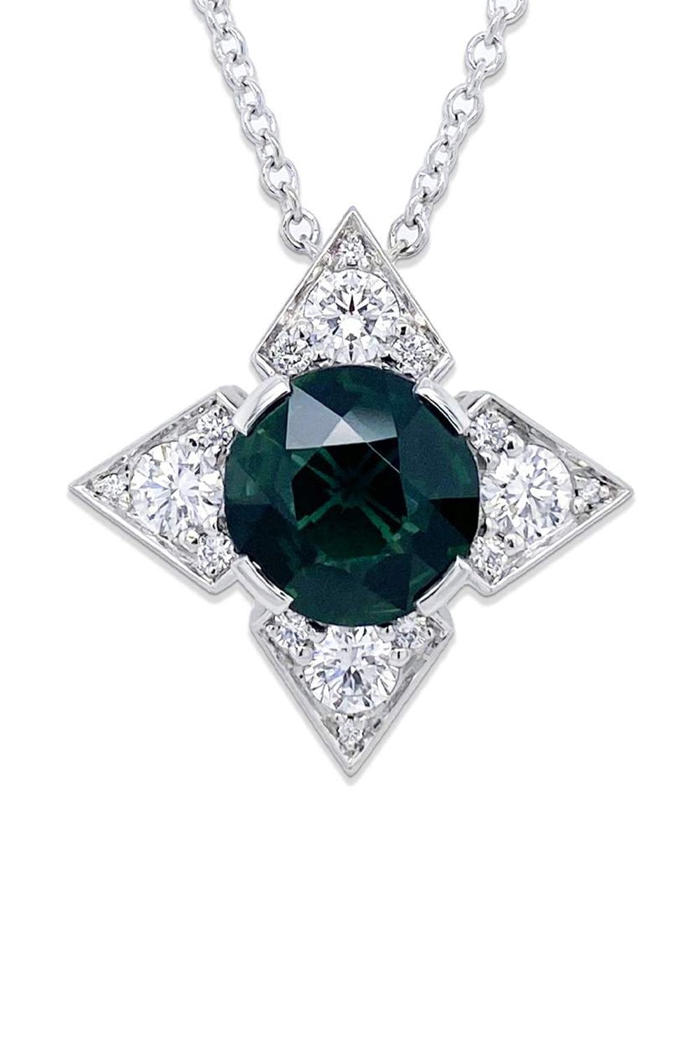 Bayco green sapphire diamond necklace in platinum.