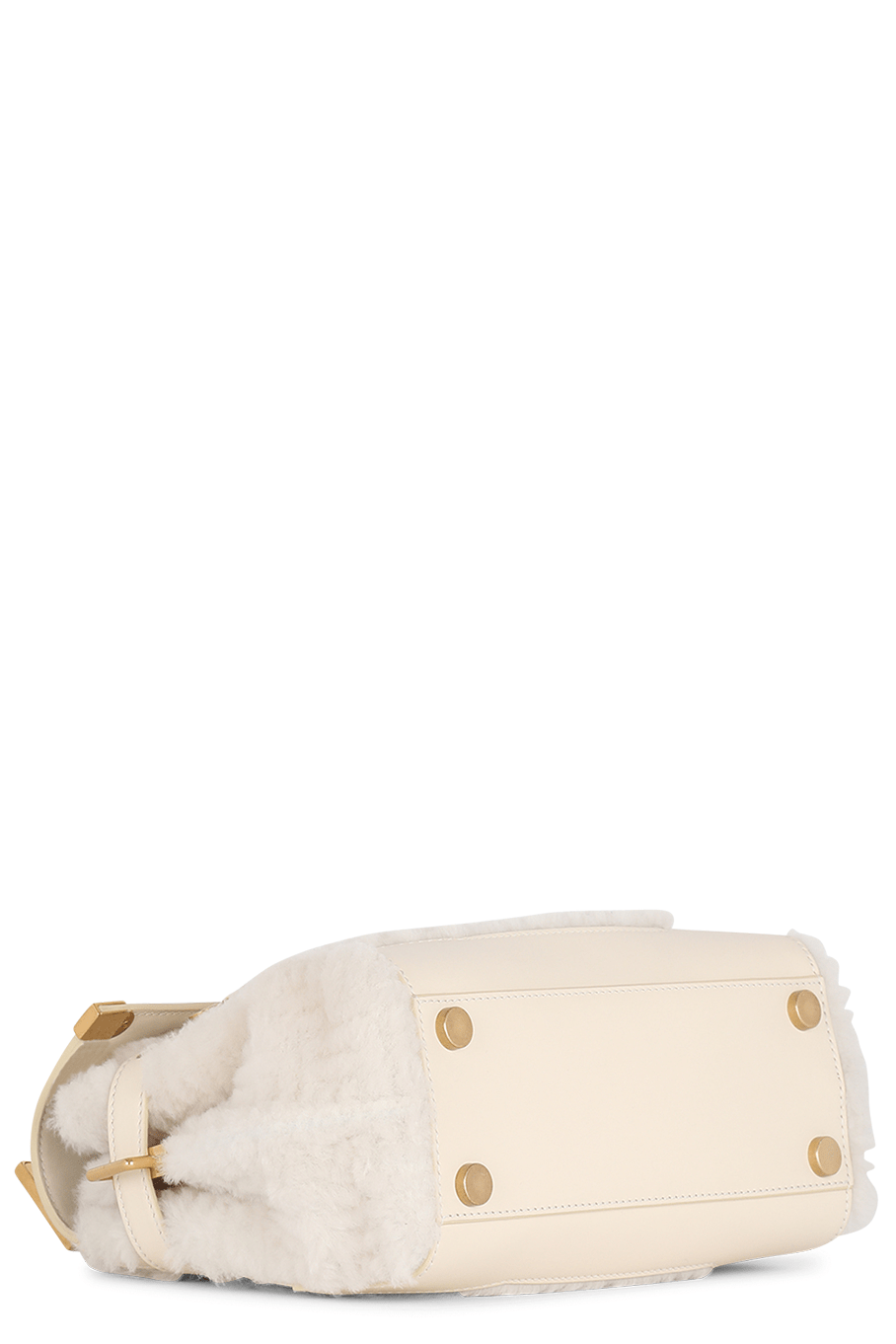 Balmain bbuzz 23 shearling bag in naturel. Features: B Quarter Turn Closure, Detachable and Adjustable Shoulder Strap, Card Slots, Interior Zip Pocket