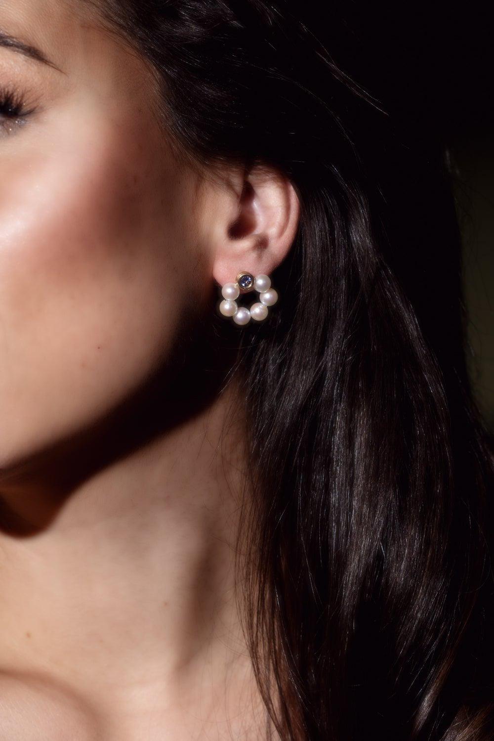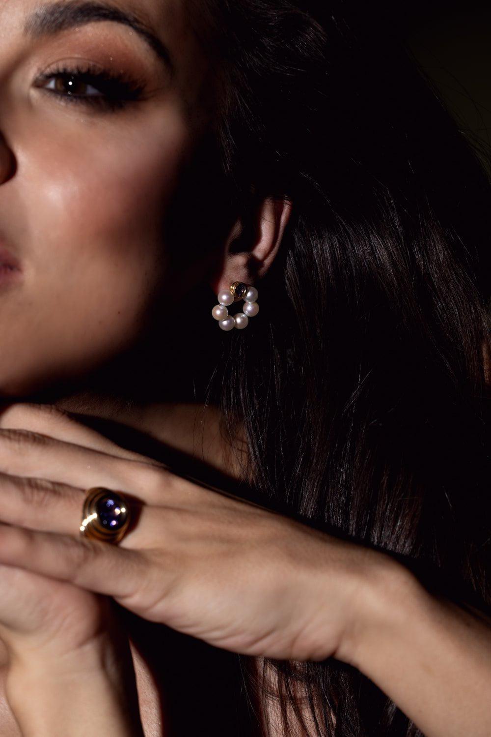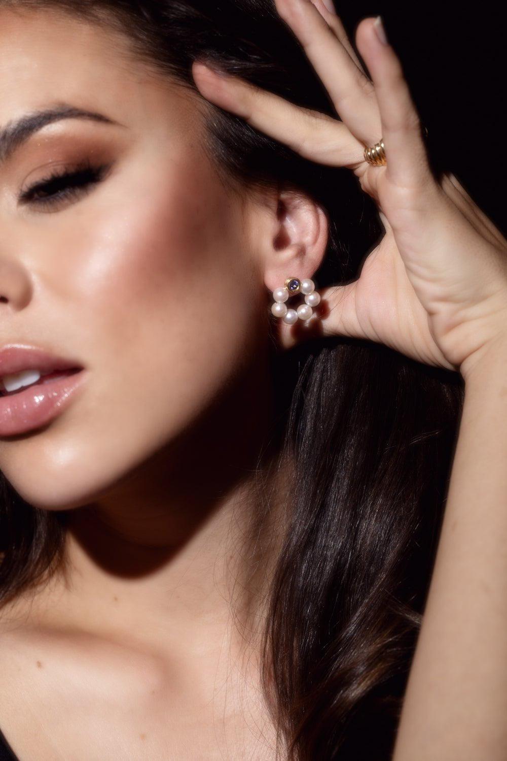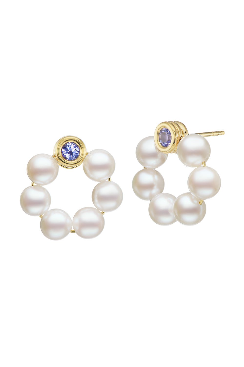 Beck Jewels grotto pearl tanzanite earrings in yellow gold.