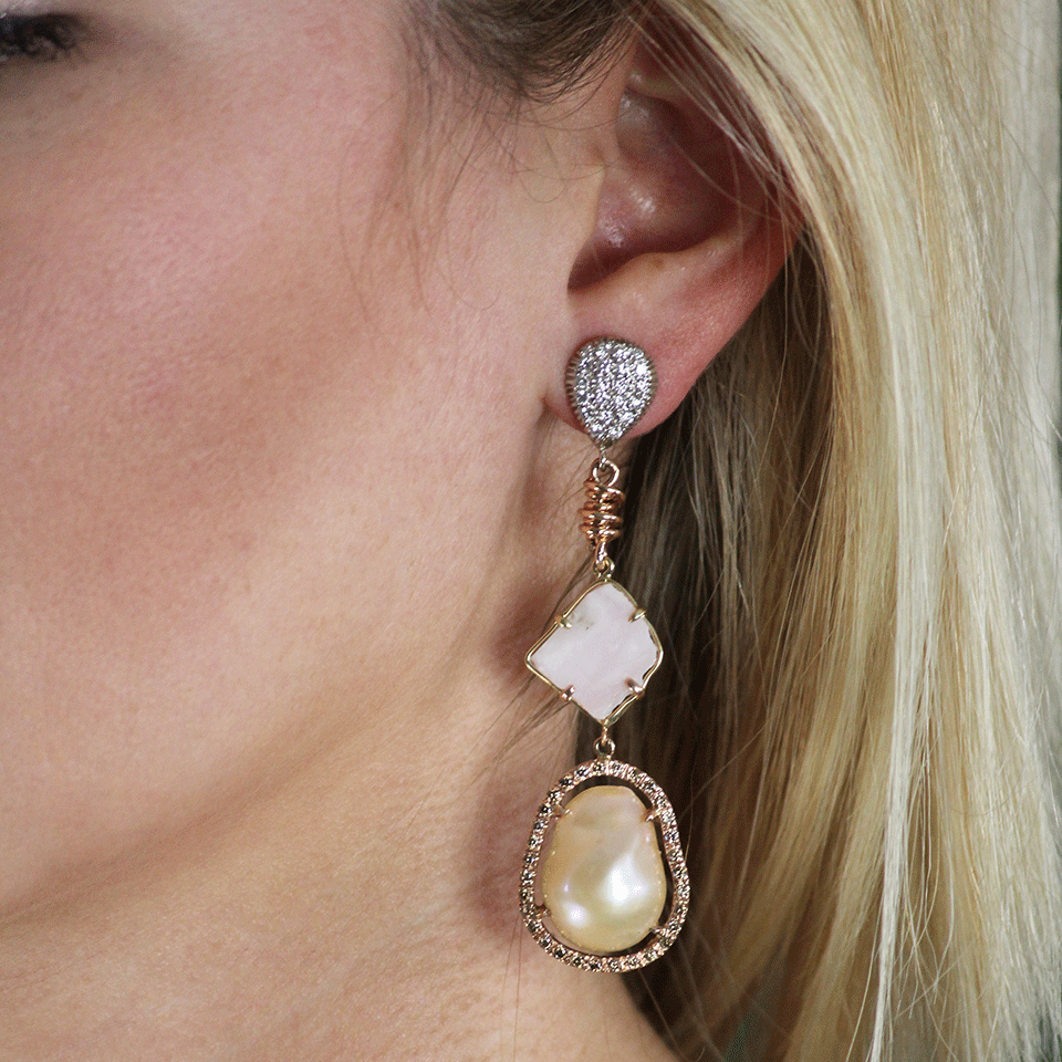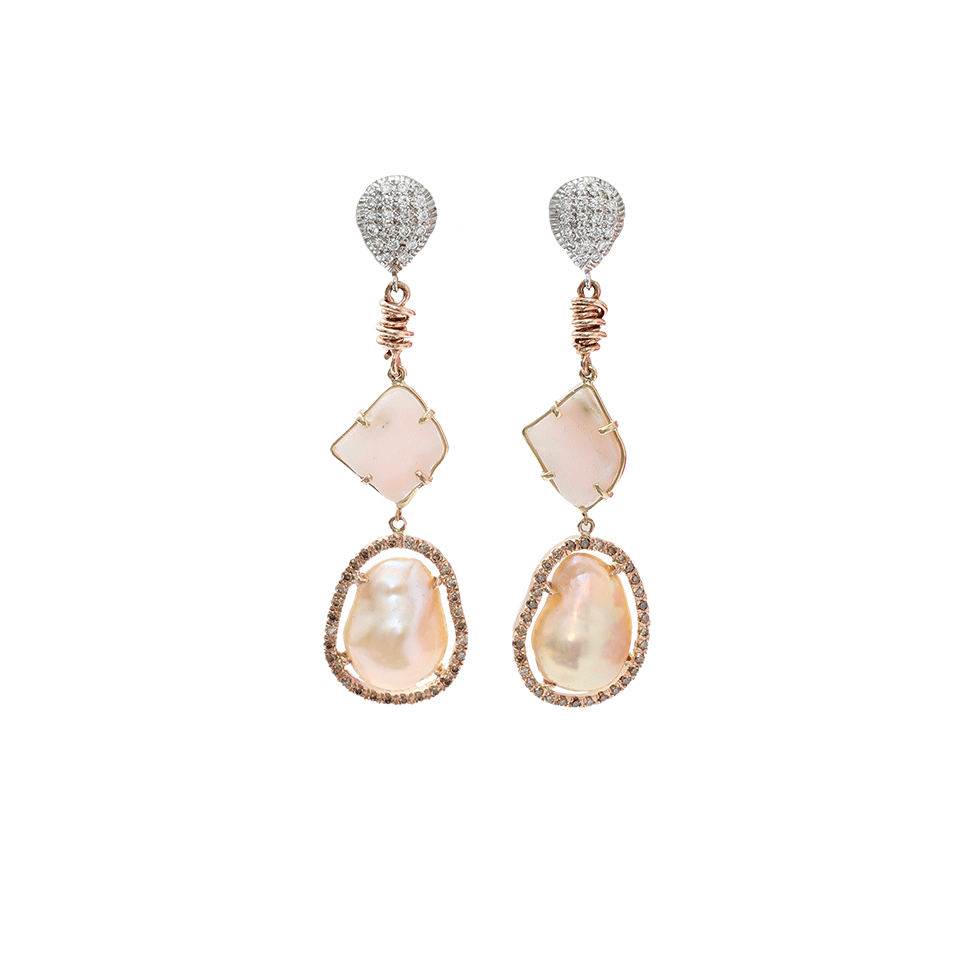 Beige Pearl Slice Earrings With Pink Opal Slice And Cognac Diamonds From Jordan Alexander