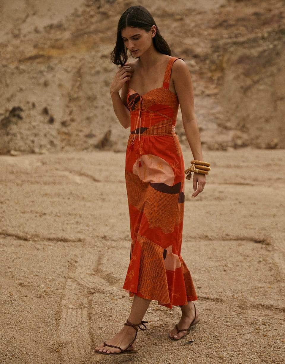 Johanna Ortiz's 'Beloved Woman' dress is sustainably made from organic cotton into a figure-flattering silhouette with ties along the sweetheart neck and an ankle-length flounce hem. Accessorize with the designer's signature statement-making jewels.