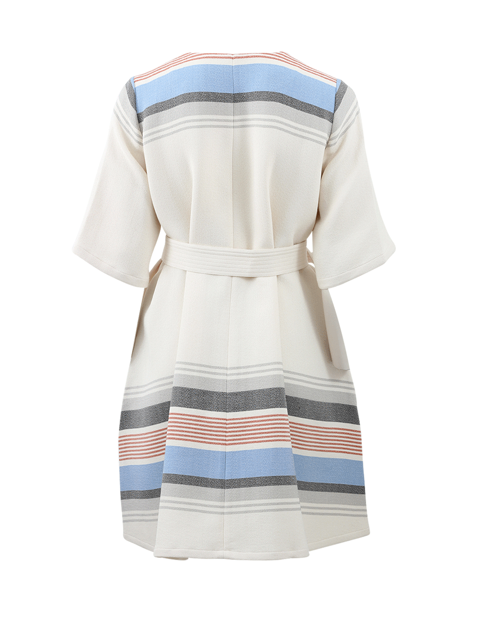 Deep V-Neckline With Elbow-Length Sleeves, Top And Bottom Stripe Motif