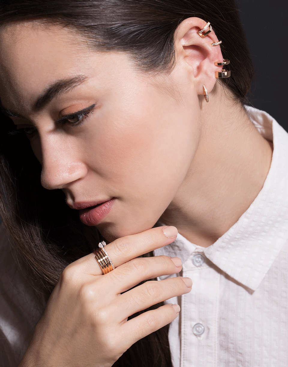 Repossi Berbère Monotype Earrcuff with a paved row in Pink gold.
