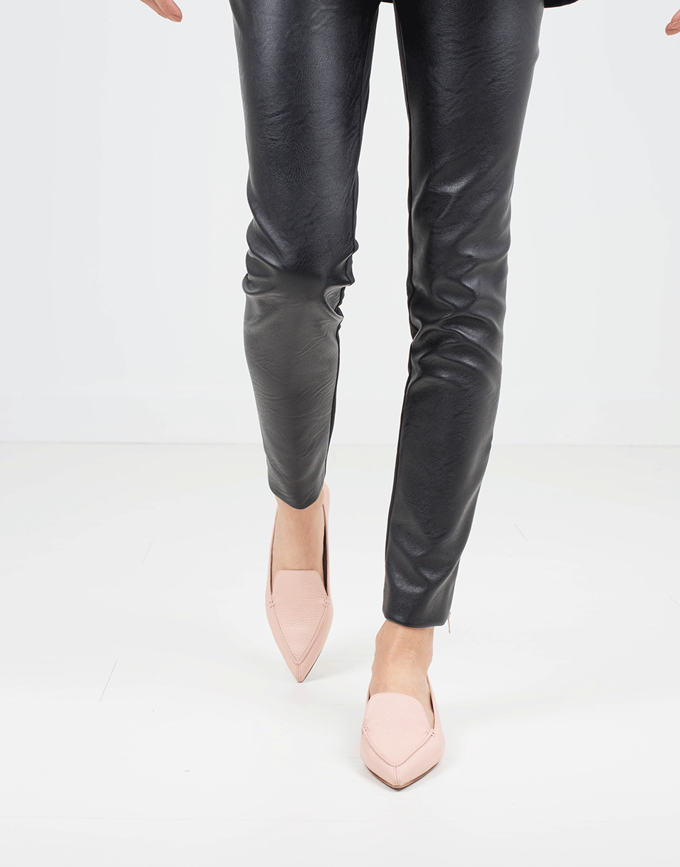 0.75" Heel With Metallic Design, Pointed Toe, And Tongue Cutout Detail