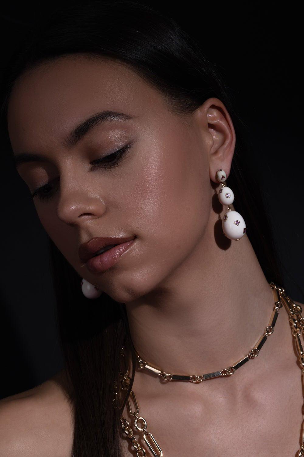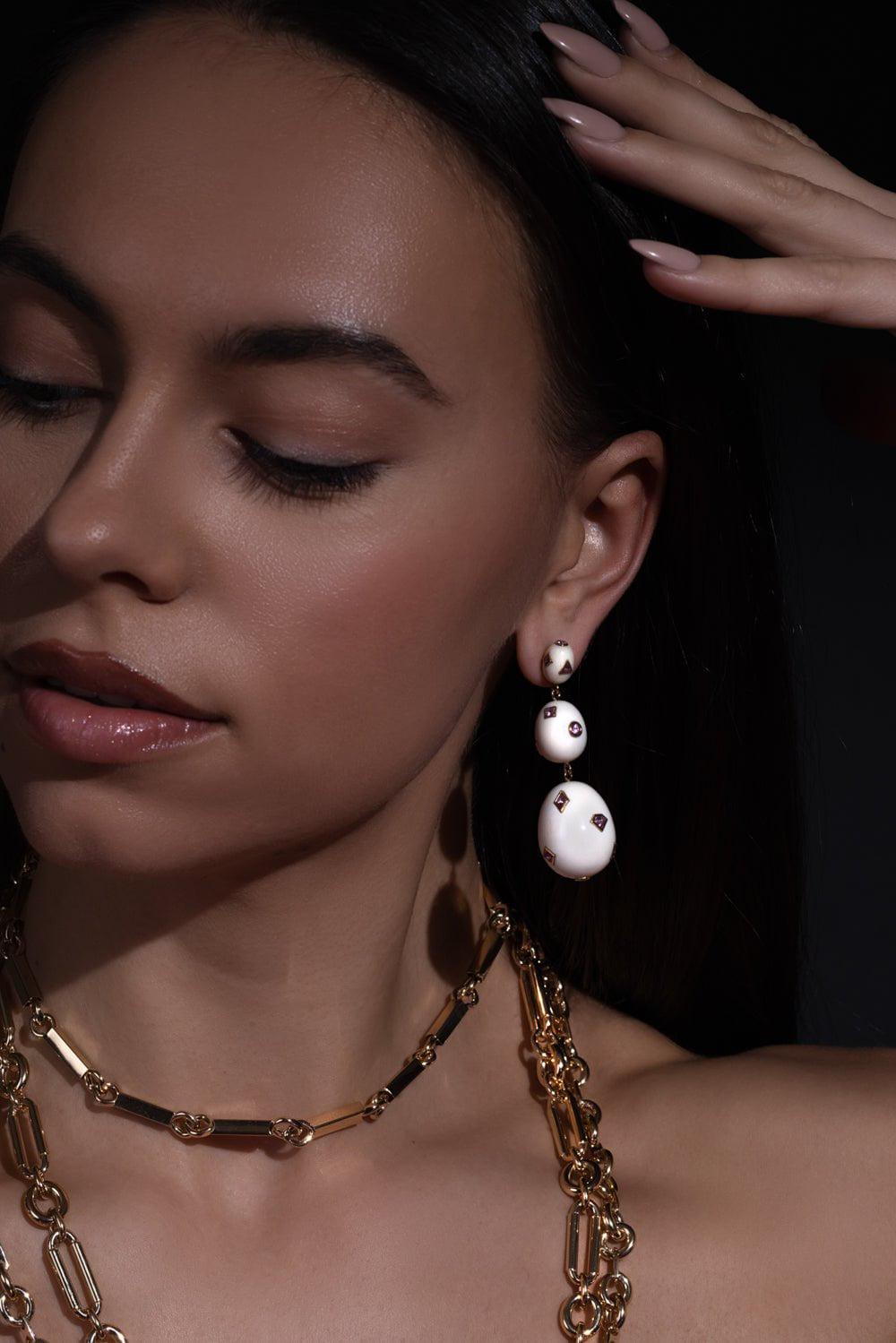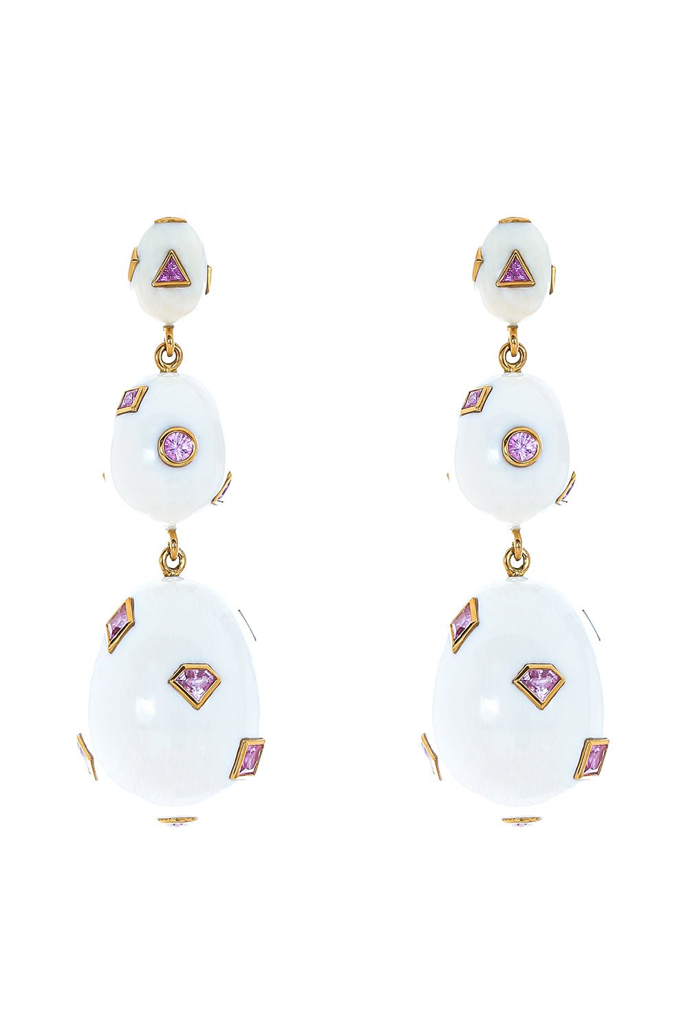 Bibi Van Der Velden pop art pink sapphire earrings in yellow gold.
