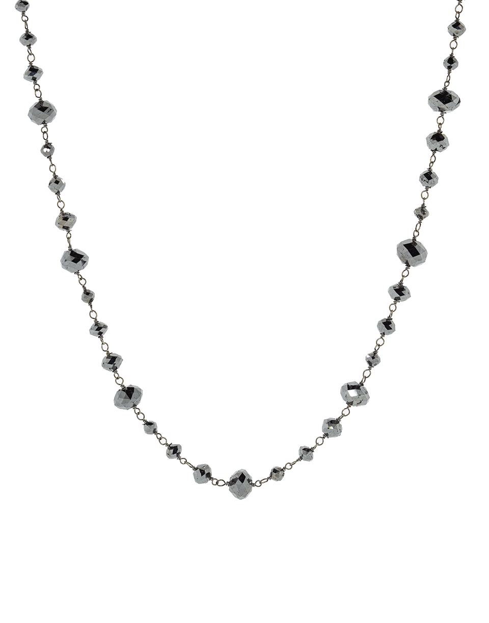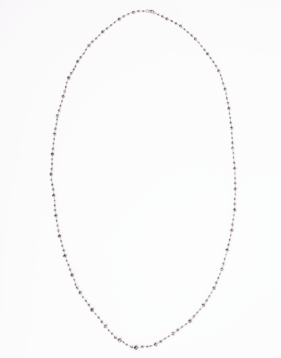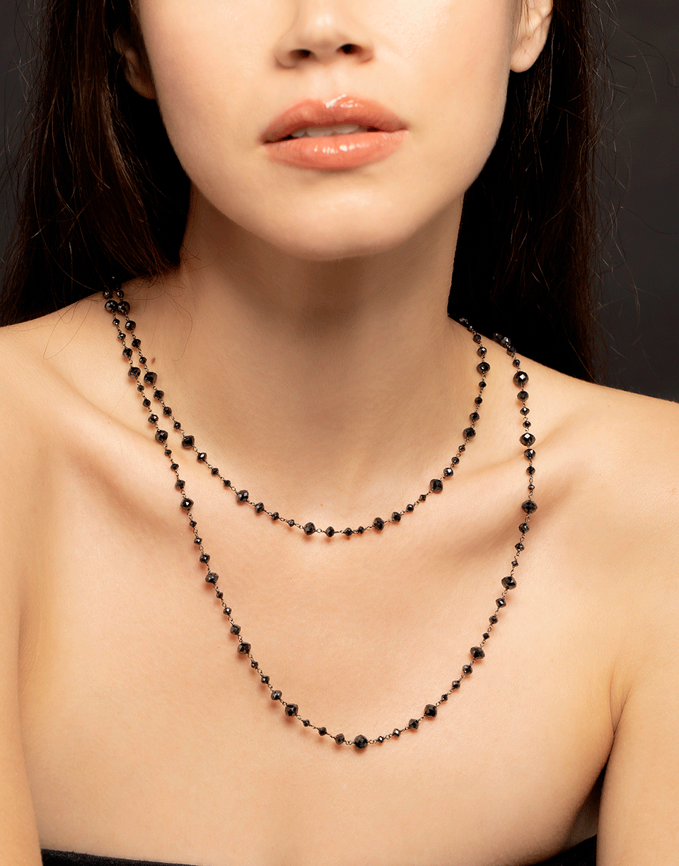 46" wire wrap necklace with black diamond beads. Double up the chain or wear as a long silhouette with a pendant.