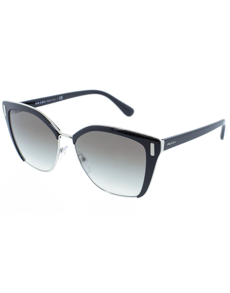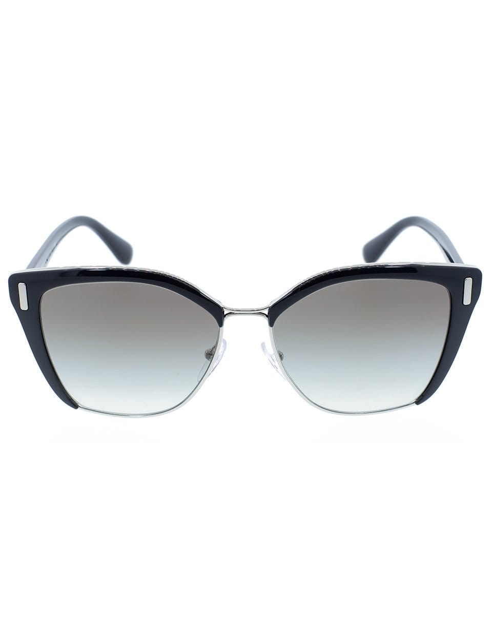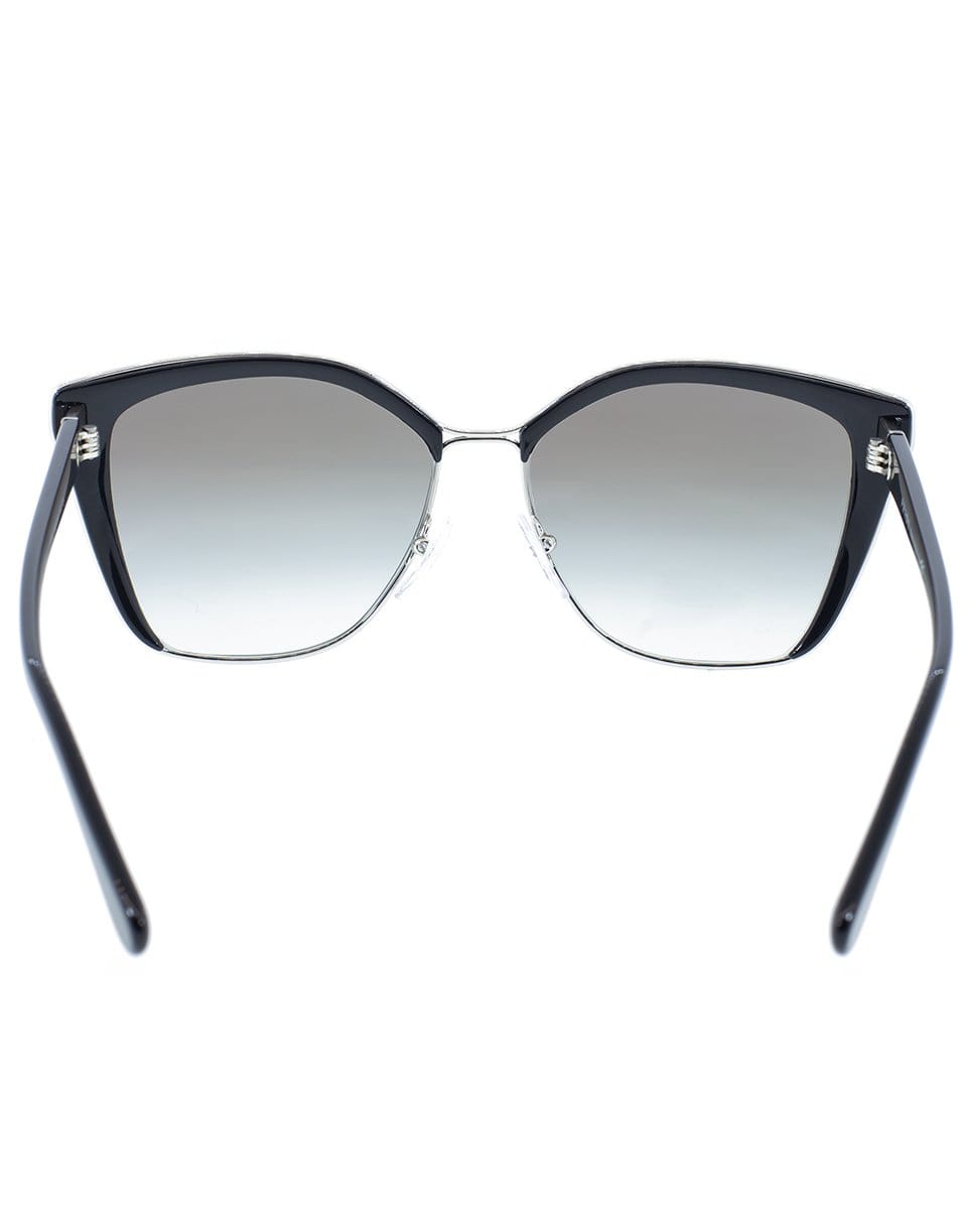 Prada full rim frame sunglasses with a square frame, black acetate, metal detail, and gradient gray lenses.