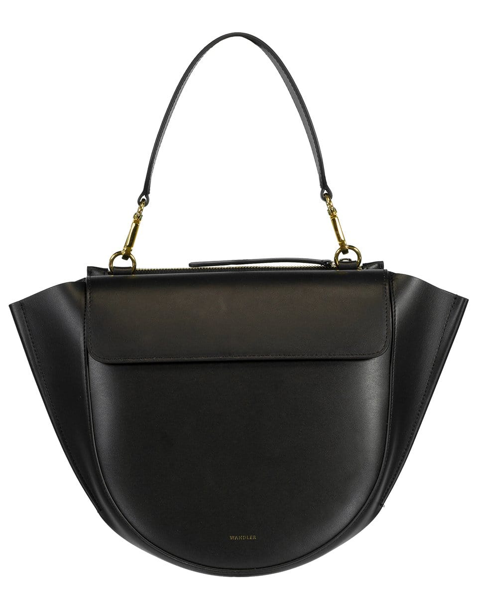 Handmade Italian calf leather Wandler Hortensia Bag with a top handle, multiple compartments, and an adjustable shoulder strap.