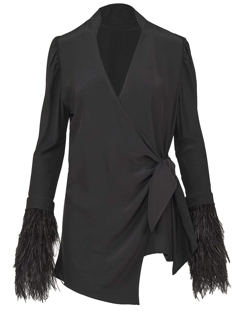 Johanna Ortiz solemnity feather-trimmed silk wrap dress.