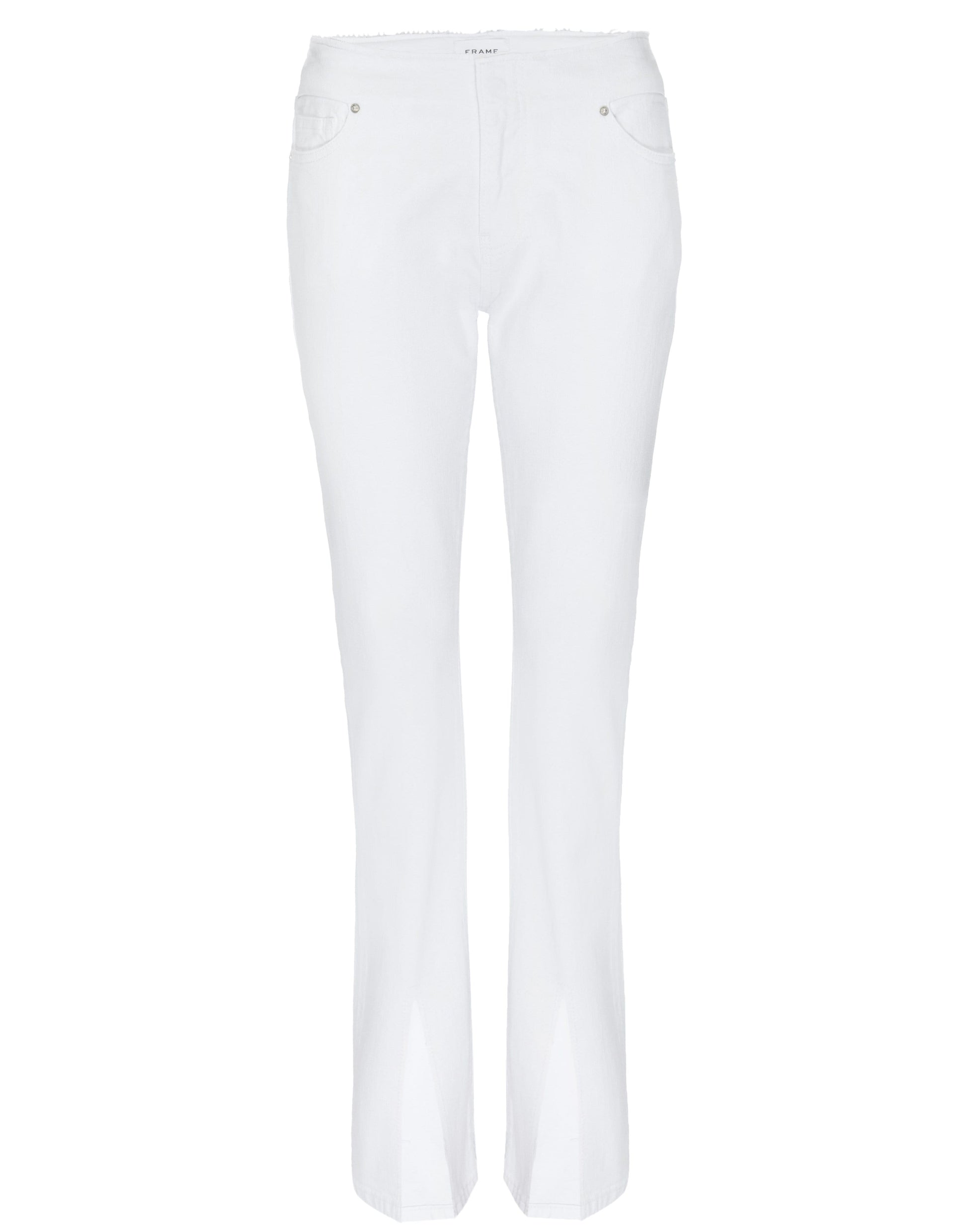 Frane updated their best-selling boot-cut jeans for the season with a raw, cut-off waist and slitted hems for an undone feel. The silhouette is designed with a comfortable contour mid-rise waistband that's form-fitting at the top and tapers out from the knee. We like these best with a top half-tucked to subtly reveal the edgy frayed detailing.
