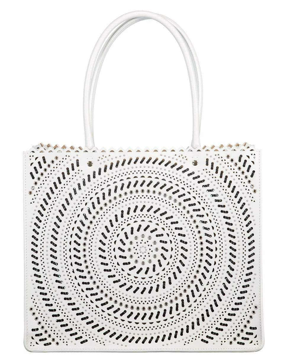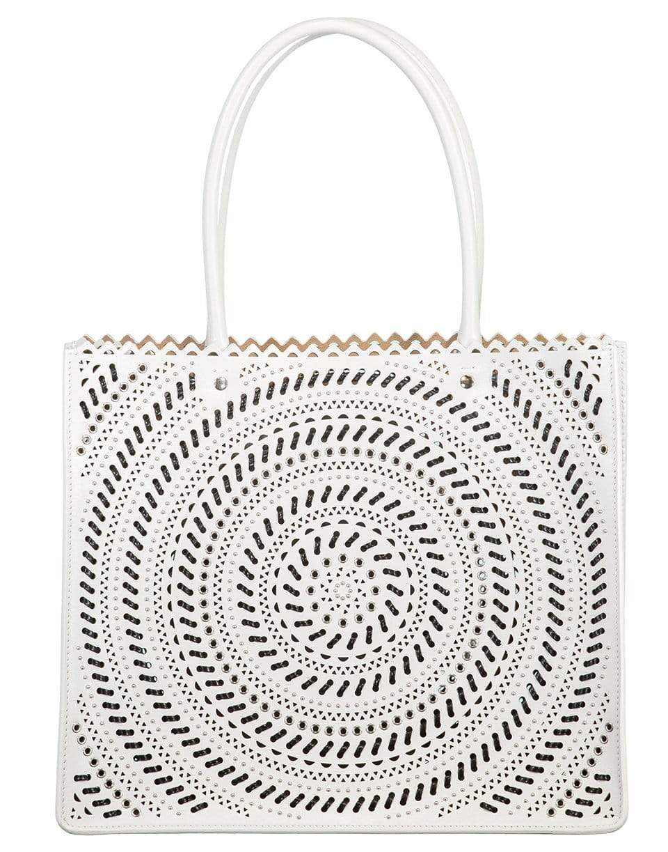 Alaïa blanc noir garance 28 leather bag in white and black.