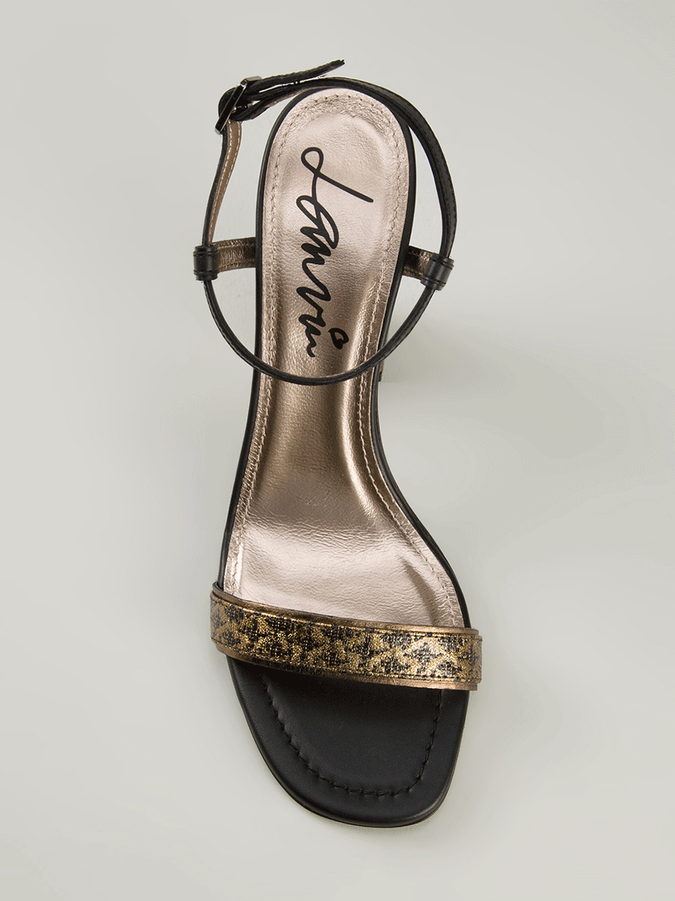 Metallic Toe Strap With Black Leather Ankle Strap And Silver Buckle Closure