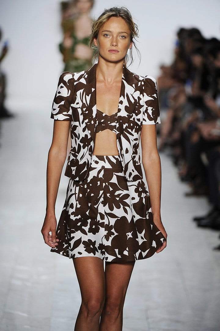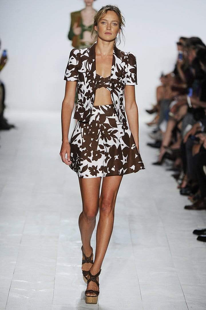 White And Nut Brown Blossom Flirt Skirt From Michael Kors