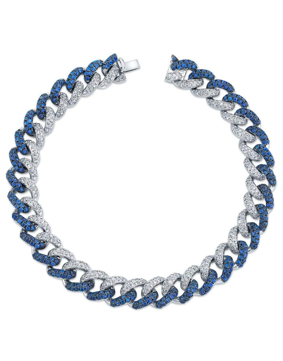 Shay two tone medium link bracelet with blue sapphires and diamonds.