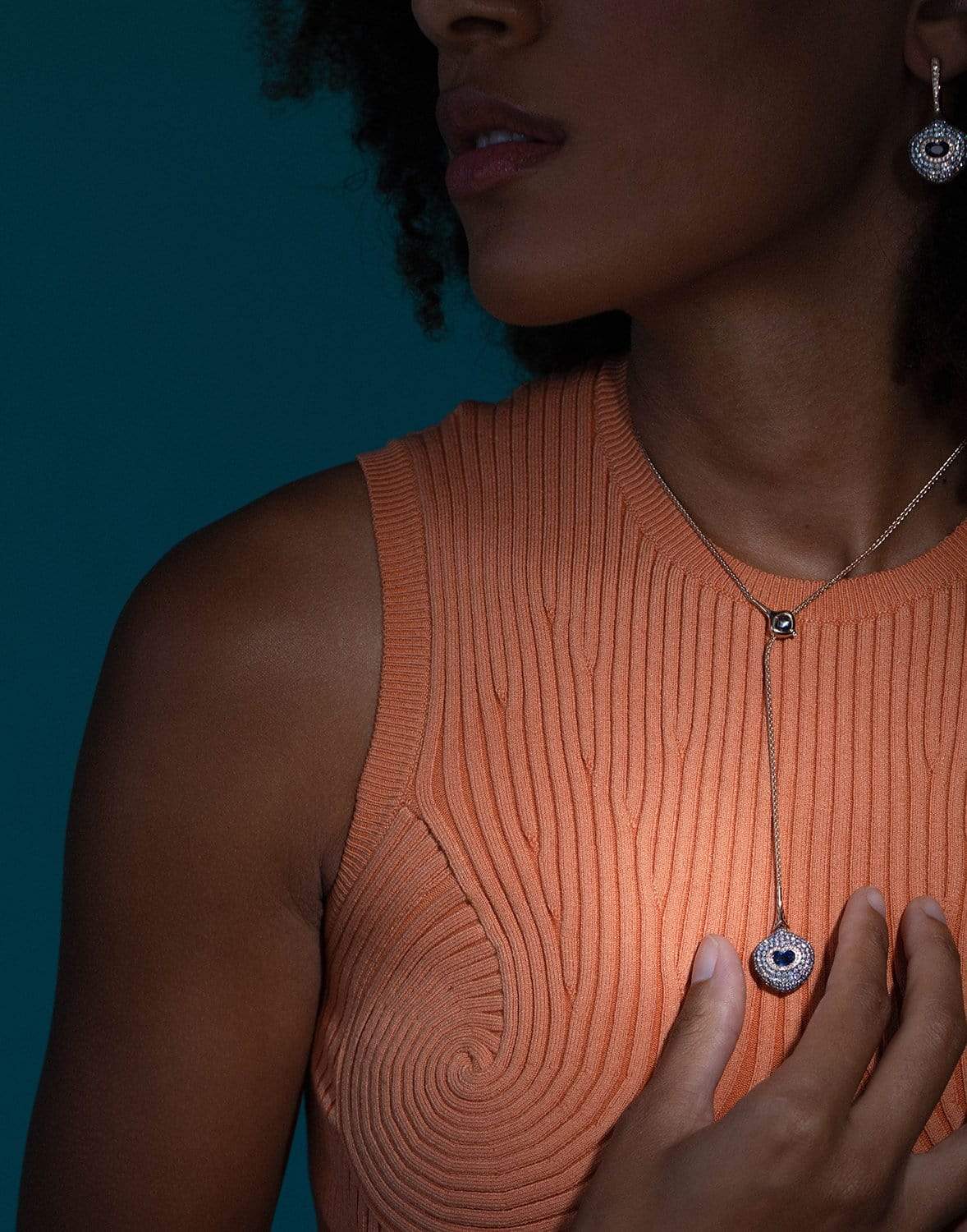 Saboo Fine Jewels Blue Sapphire and Diamond multi color necklace.