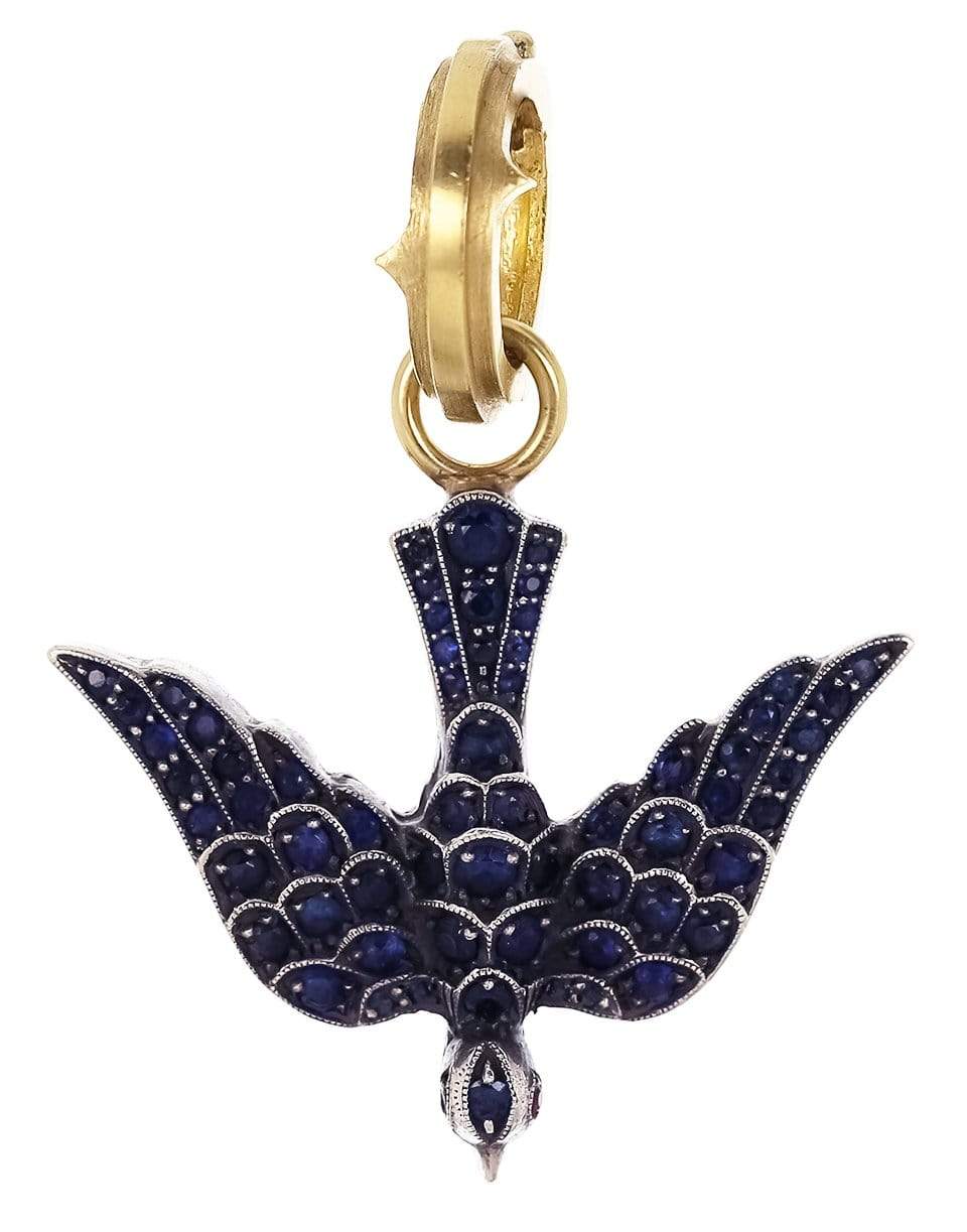 Have a Heart blue sapphire small swallow charm with ruby eyes by Sylva and Cie.