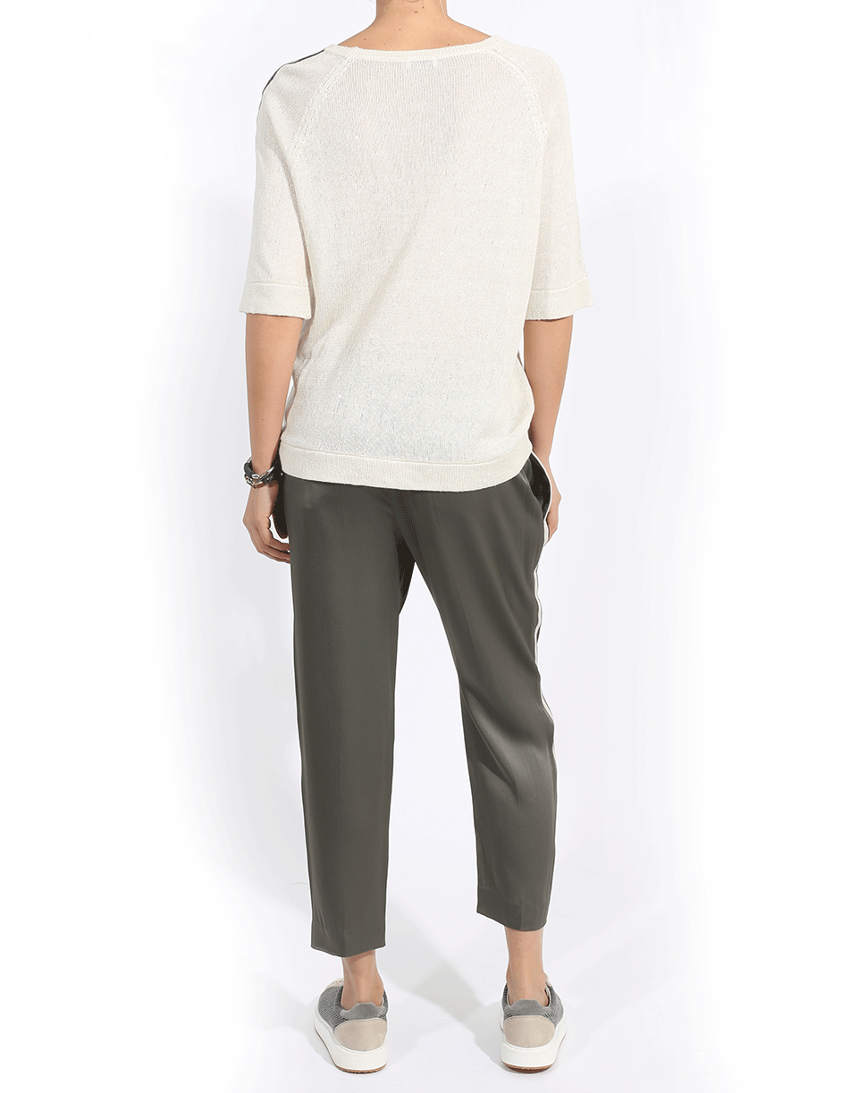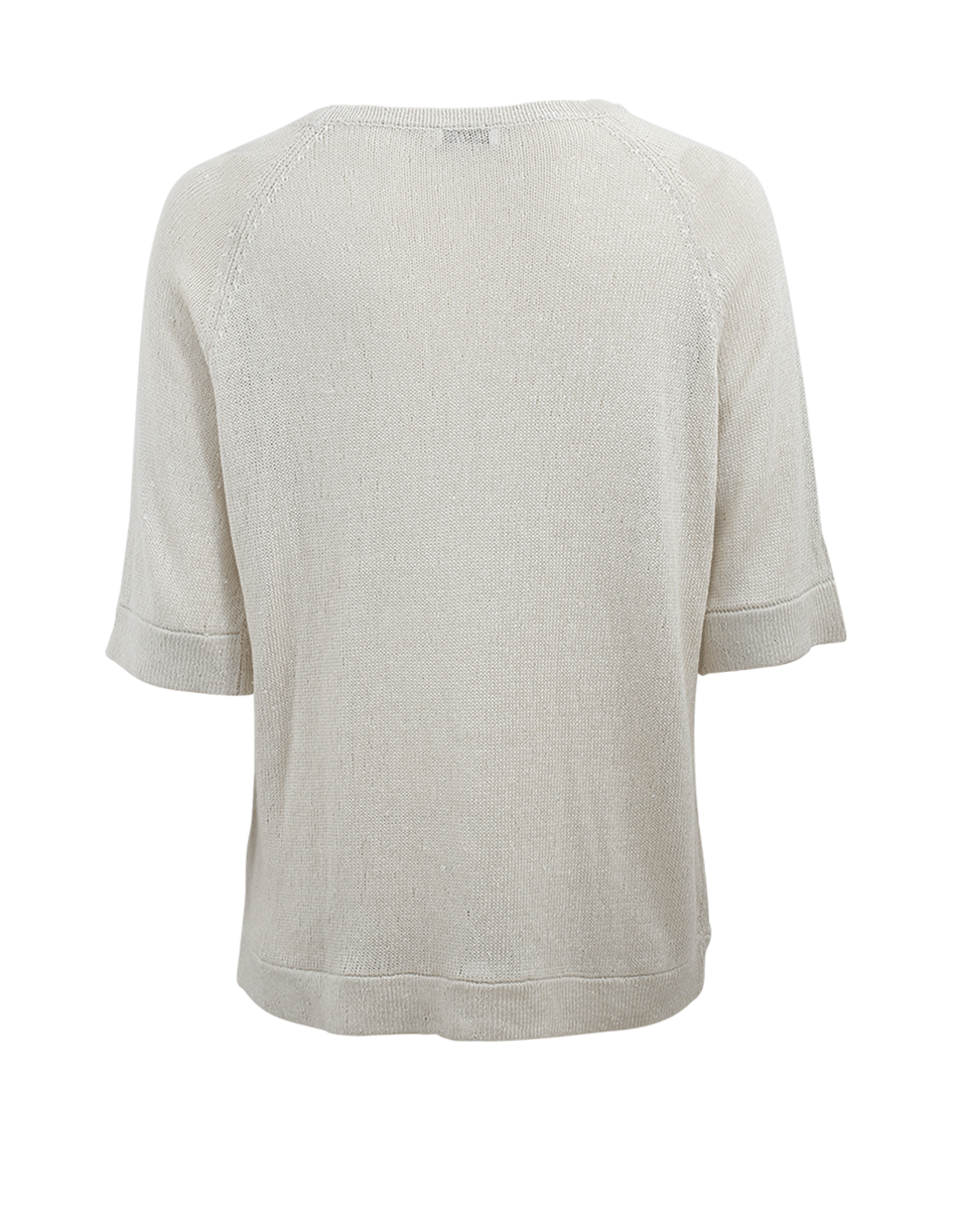 Ribbed Crew Neckline With Elbow Sleeves And Ribbed Hem