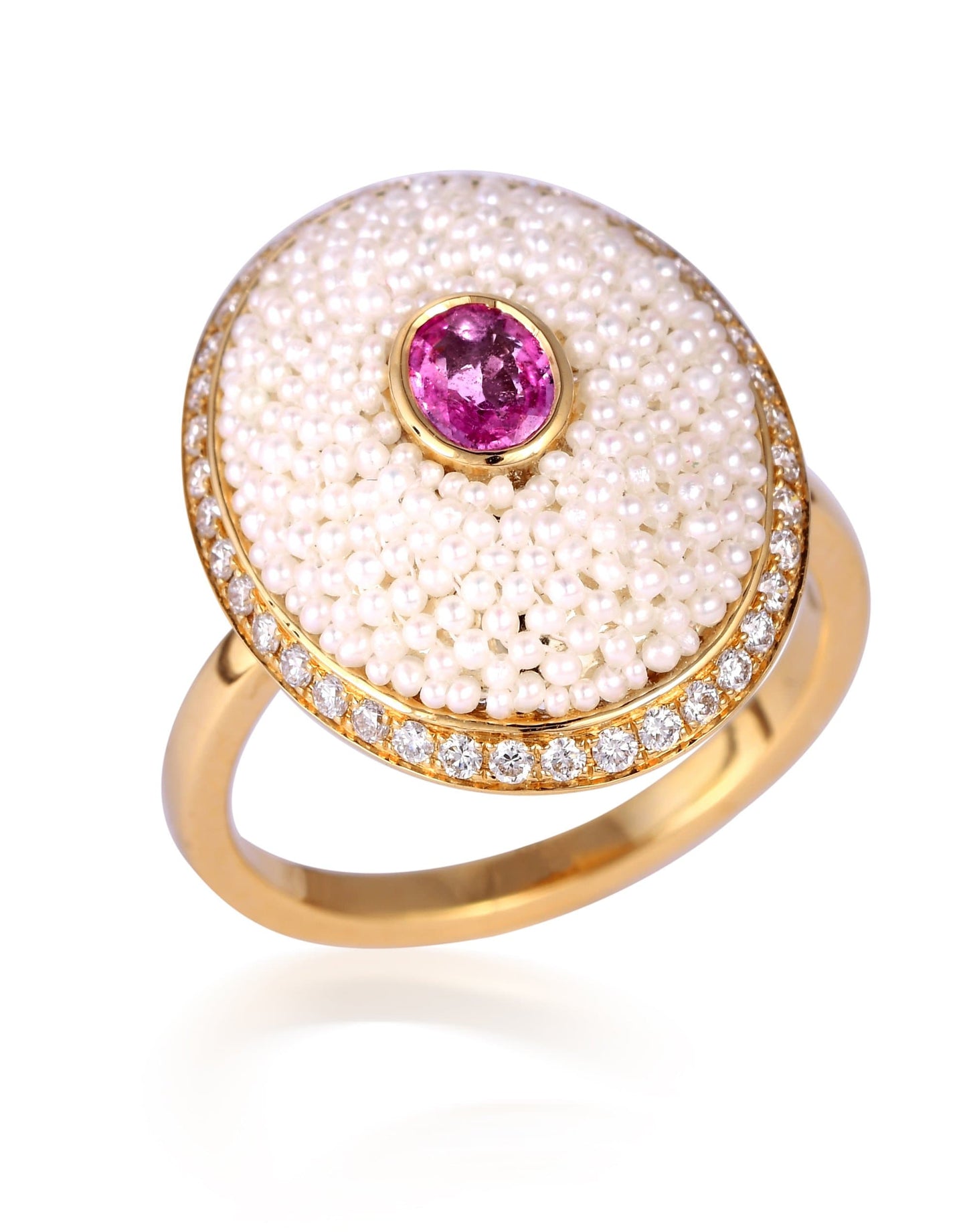 Moksh Bombay Keshi pearl and pink sapphire ring.