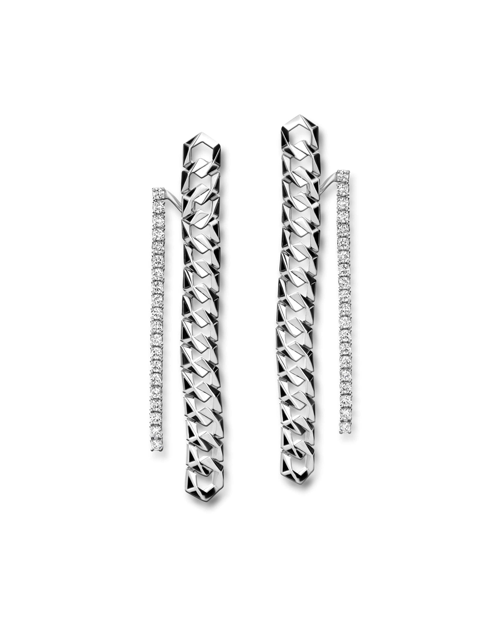 BARE Bond signature white gold and white diamond earrings VII. A collection inspired by control, individuality and power. “If you are ruled by mind you are a king; If by body, a slave” Signature BARE Style Earrings, handmade in Antwerp, using 18kt gold and white diamonds (G-VS Quality).