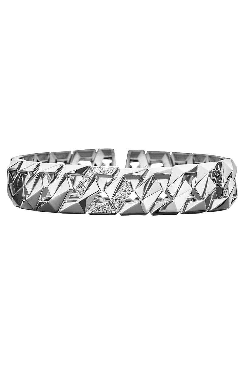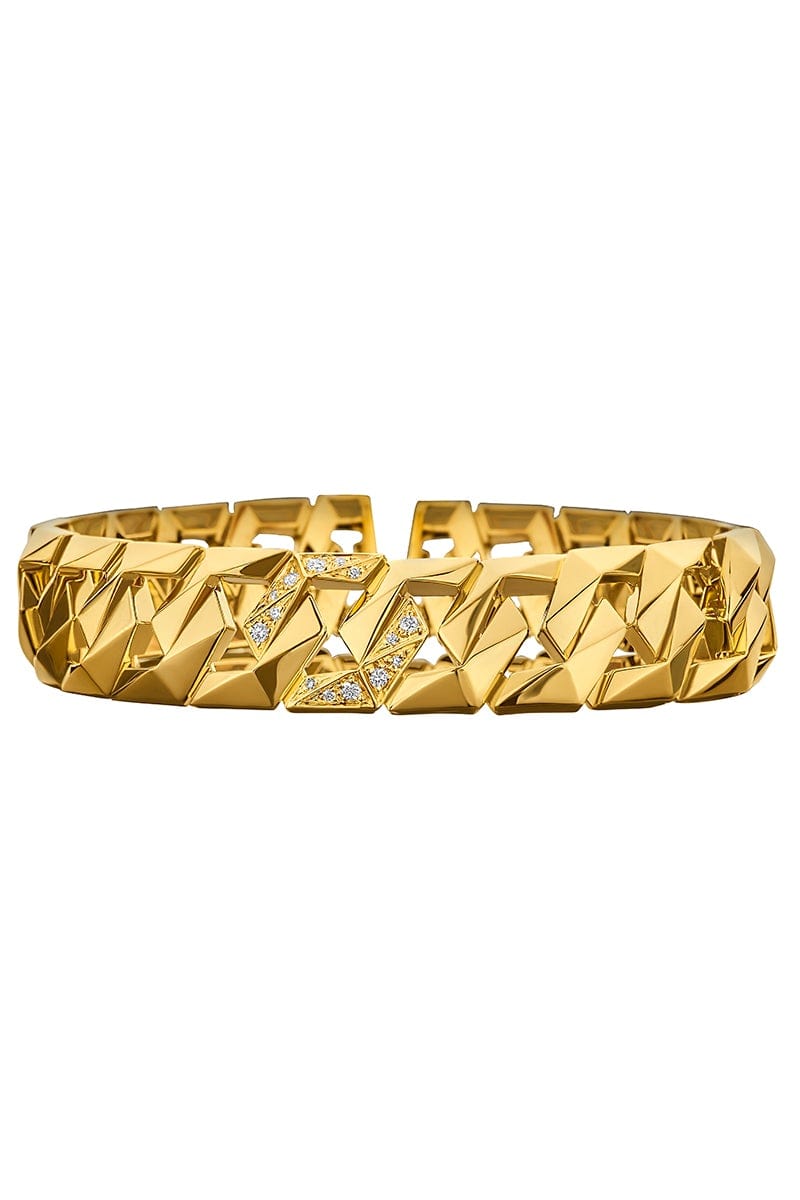 BARE fine jewelry bond signature M bracelet. A collection inspired by control, individuality and power. “If you are ruled by mind you are a king; If by body, a slave” Bracelet, handmade in Antwerp, using 18kt gold, white diamonds.