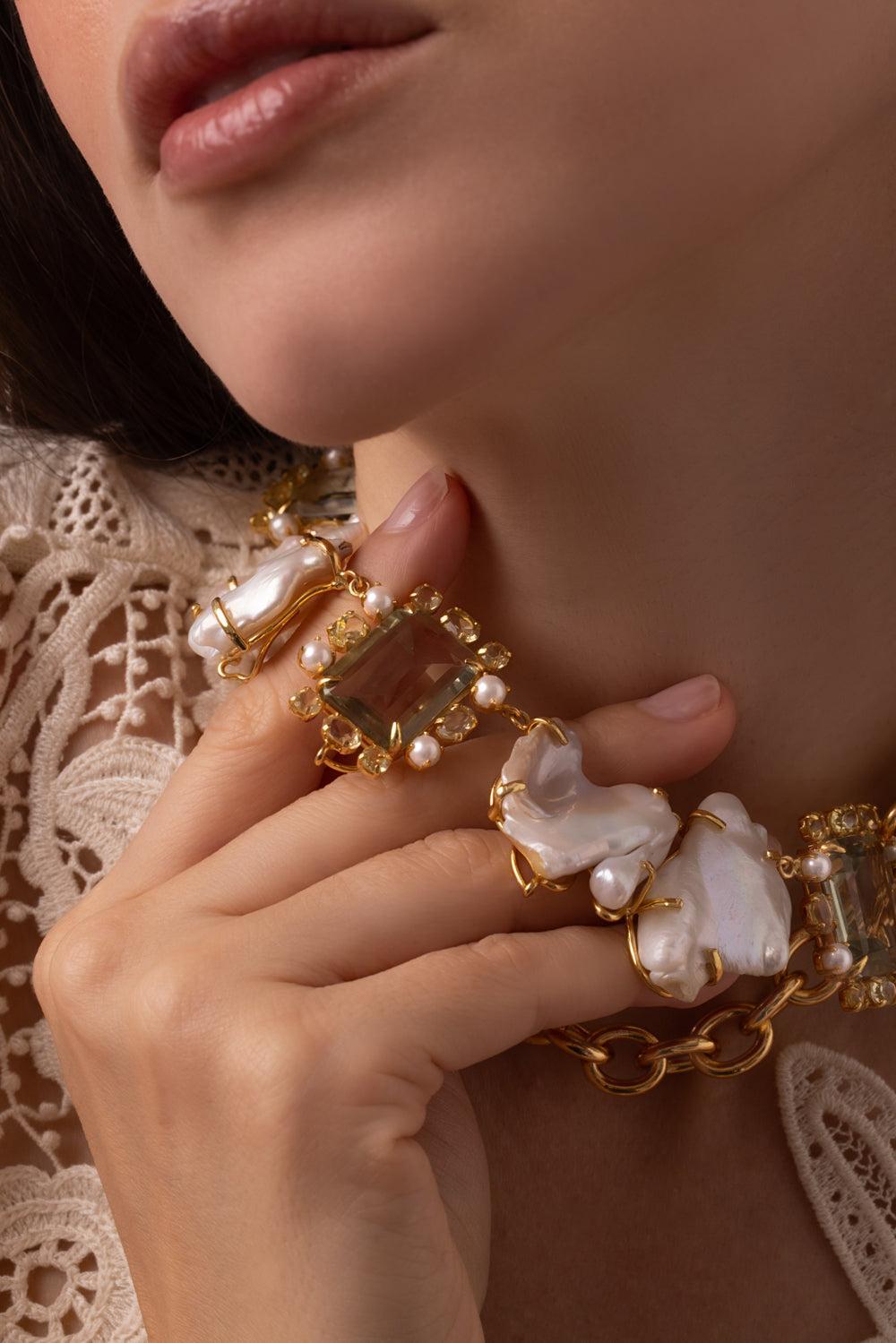 Bounkit pearl amethyst jana cuff bracelet in yellow gold.