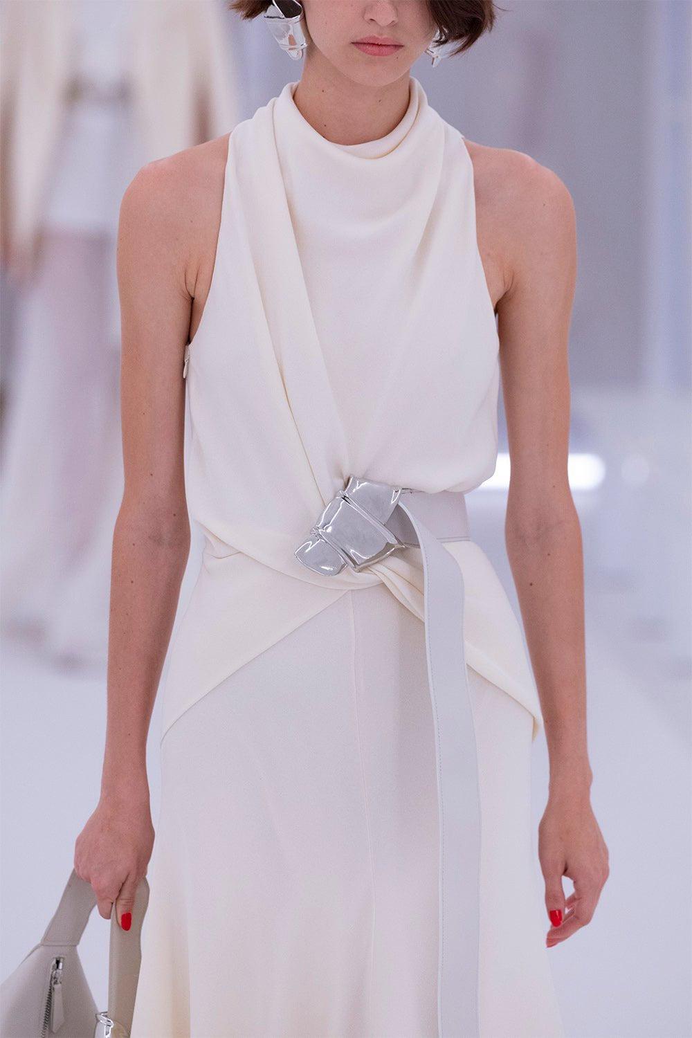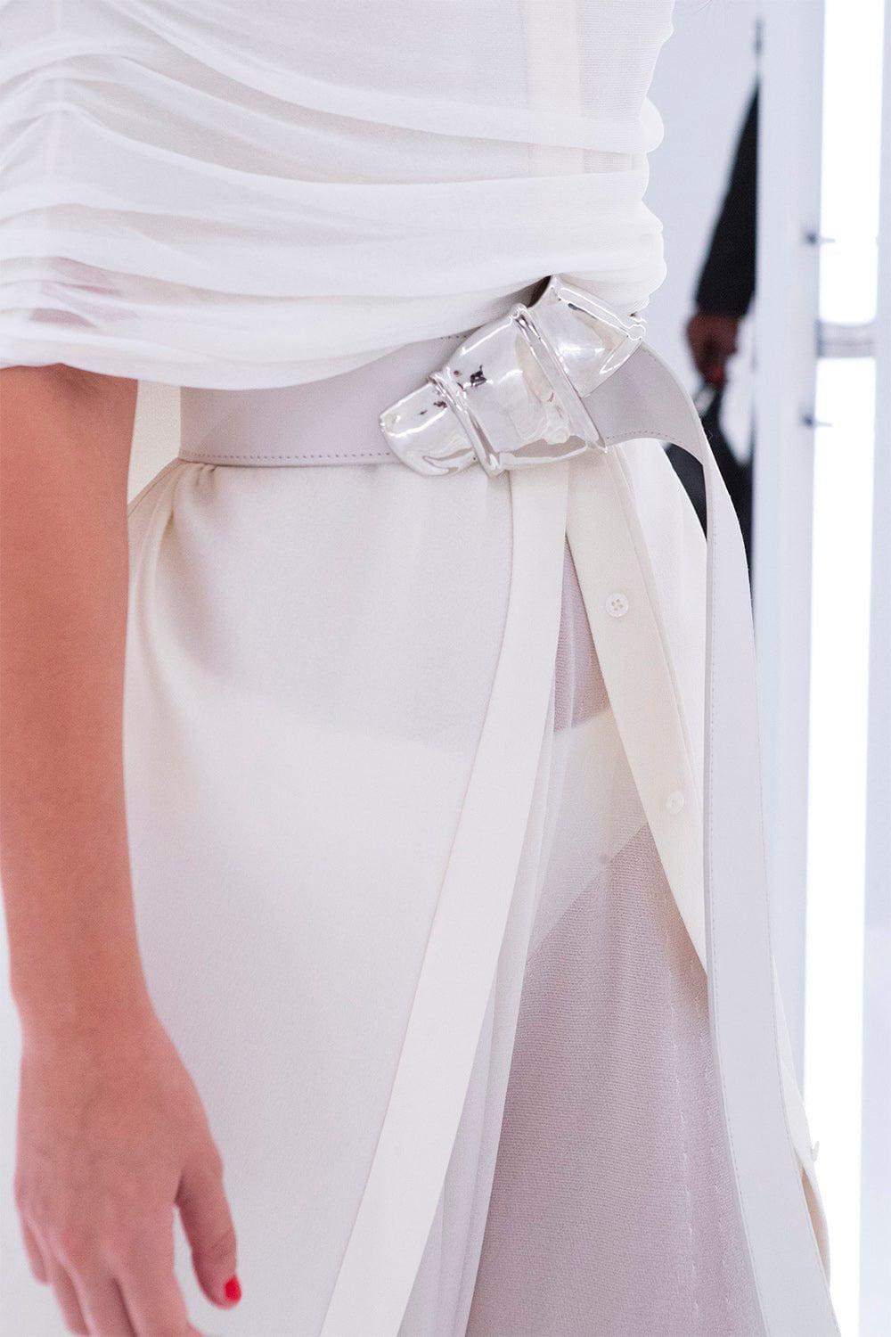 Brandon Maxwell silver knot buckle belt in silver/oyster.