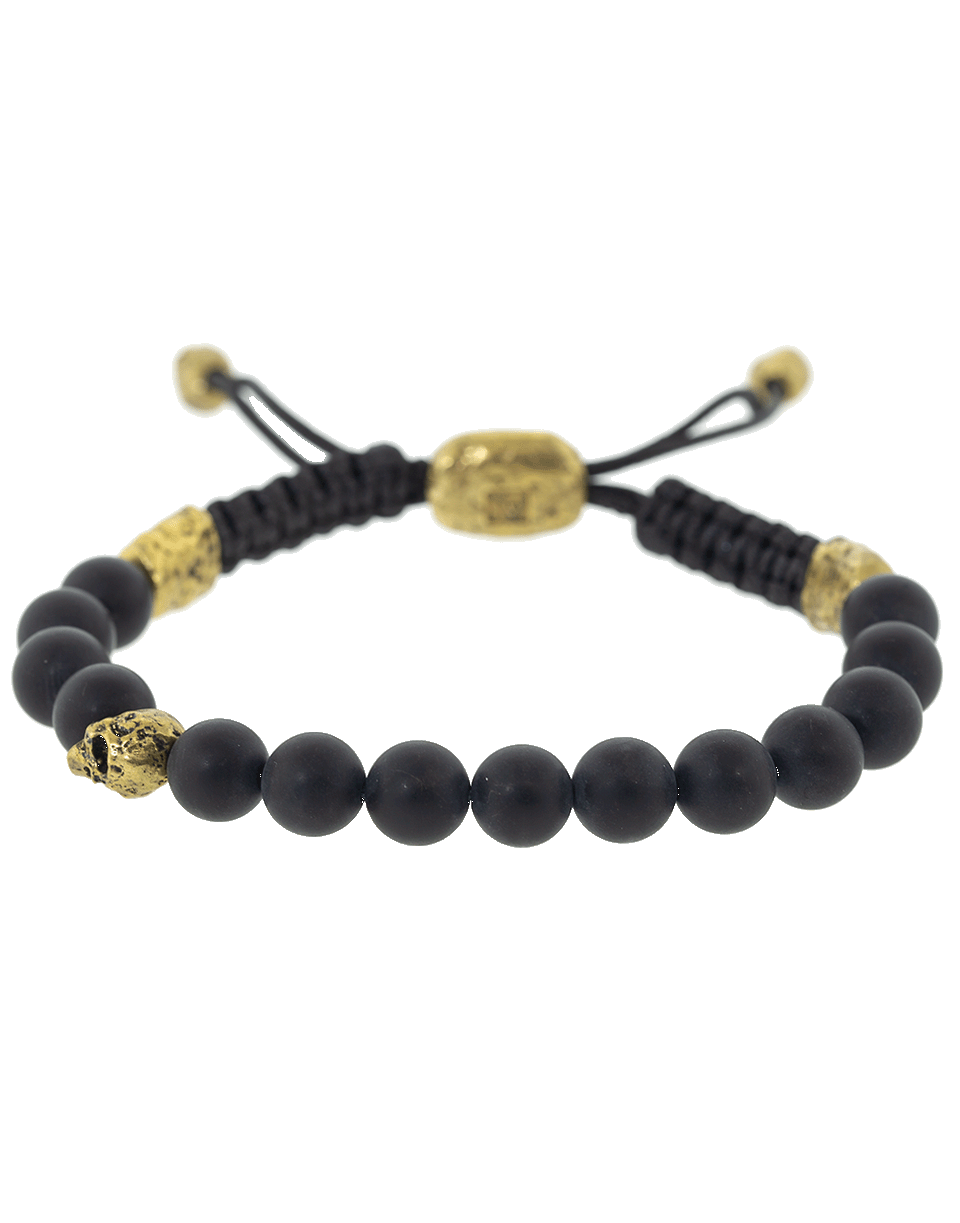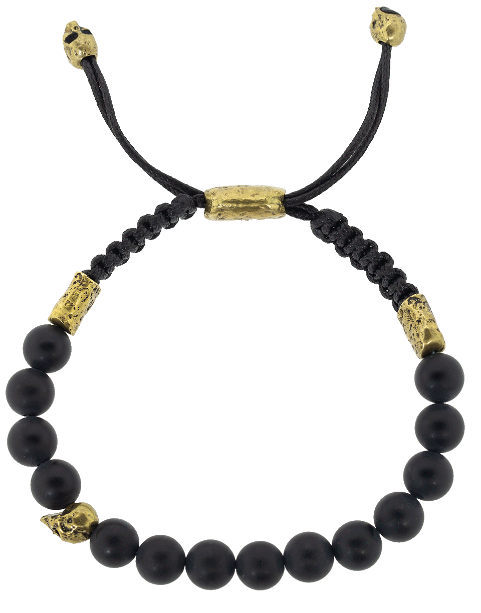 8mm brass skull and onyx bead ajustable bracelet from John Varvatos.