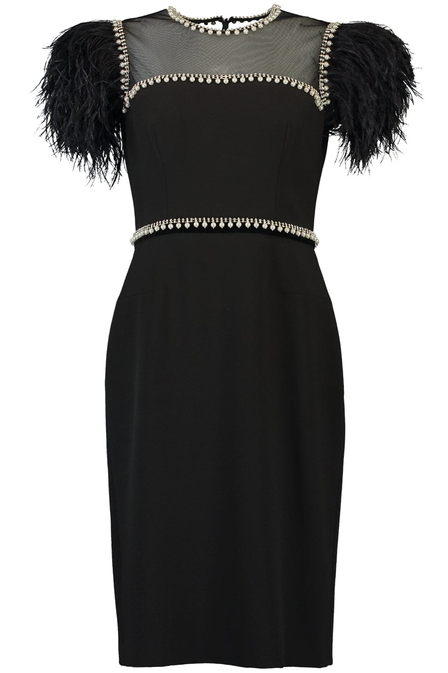 Jenny Packham bridget feather short sleeve cocktail dress in black.