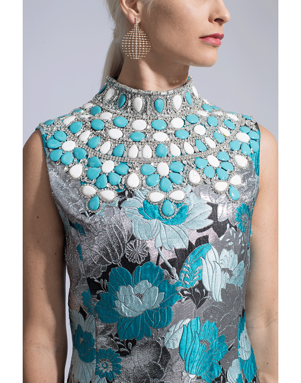 71% Polyester, 15% Polyamide, 8% Metallized, 6% Silk, Dry Clean