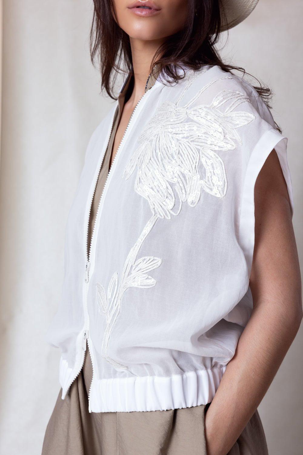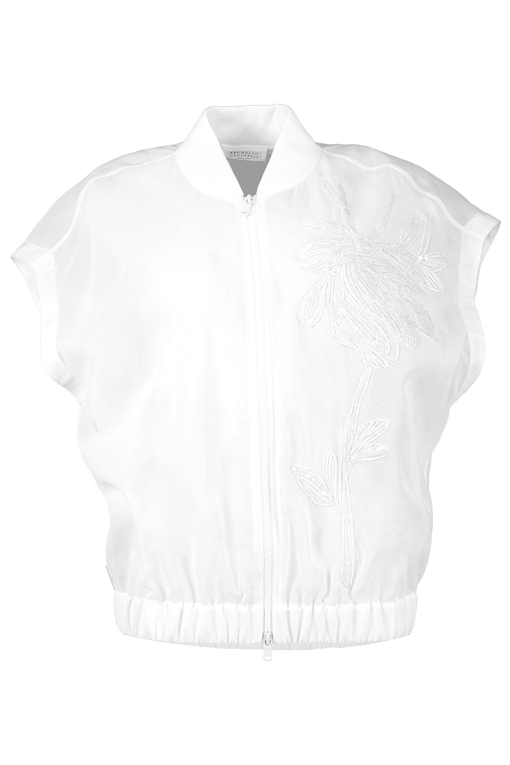 Brunello Cucinelli cap sleeve magnolia cap sleeve jacket in white.