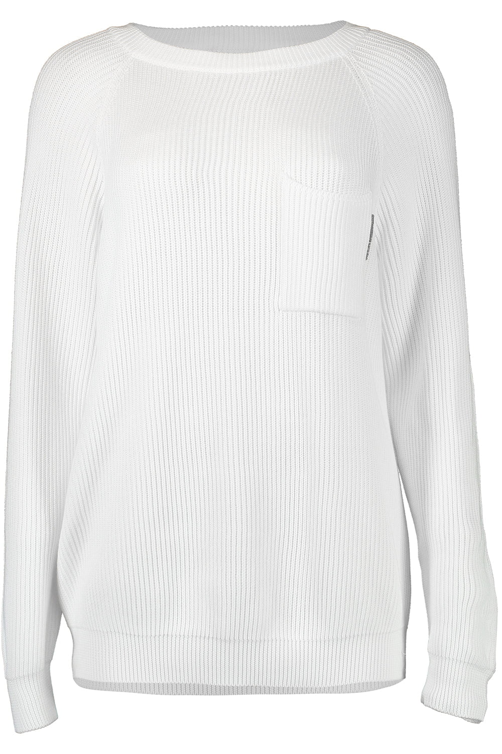 Brunello Cucinelli english rib monili pocket sweater in white.