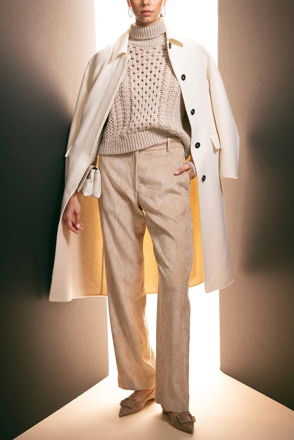 Brunello Cucinelli hand-crafted double cloth coat in panama/feather.