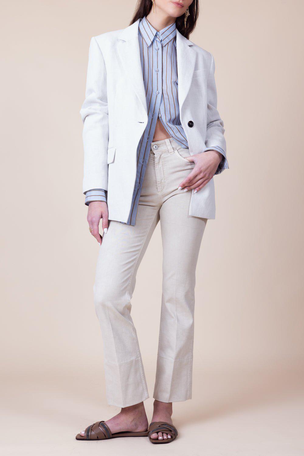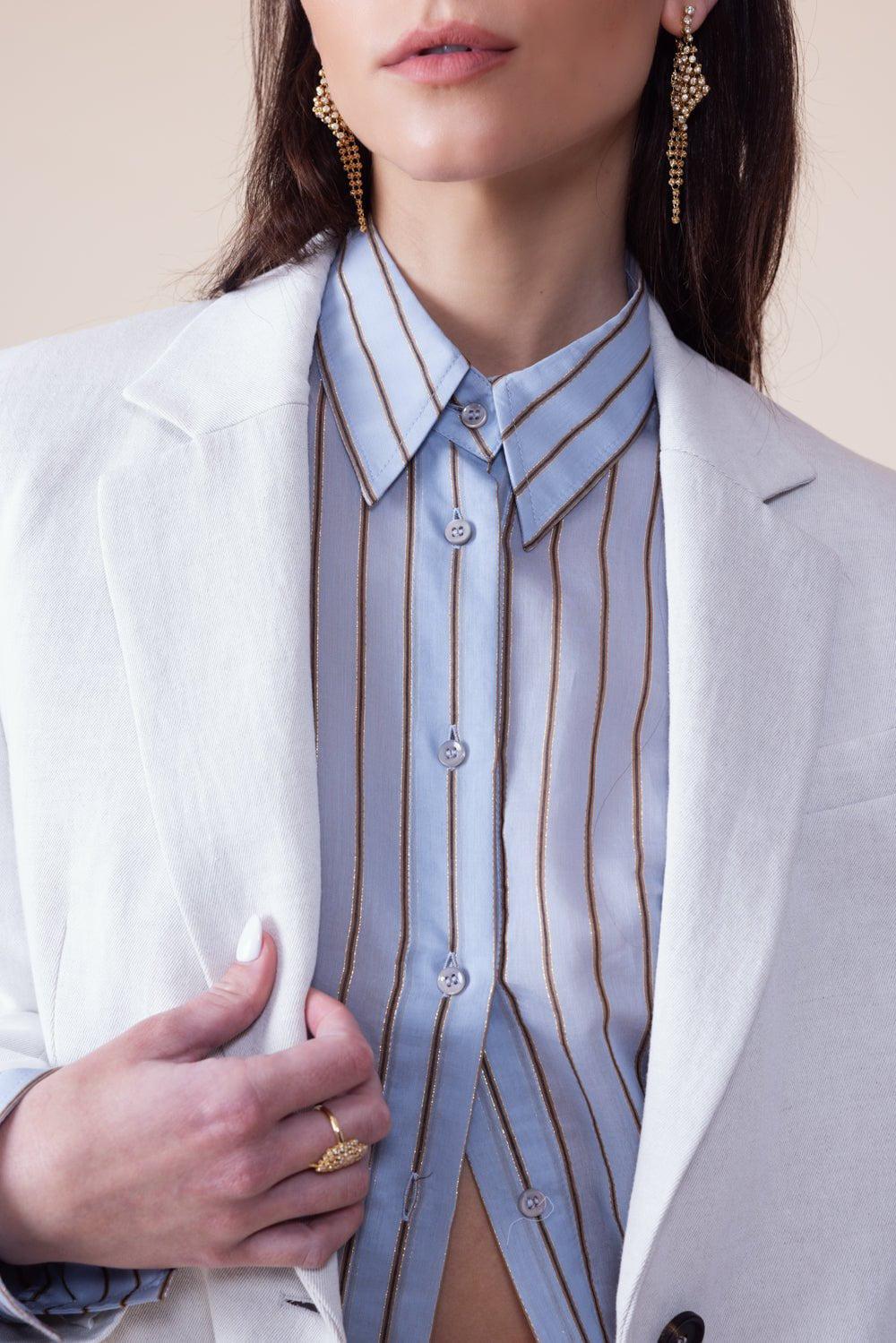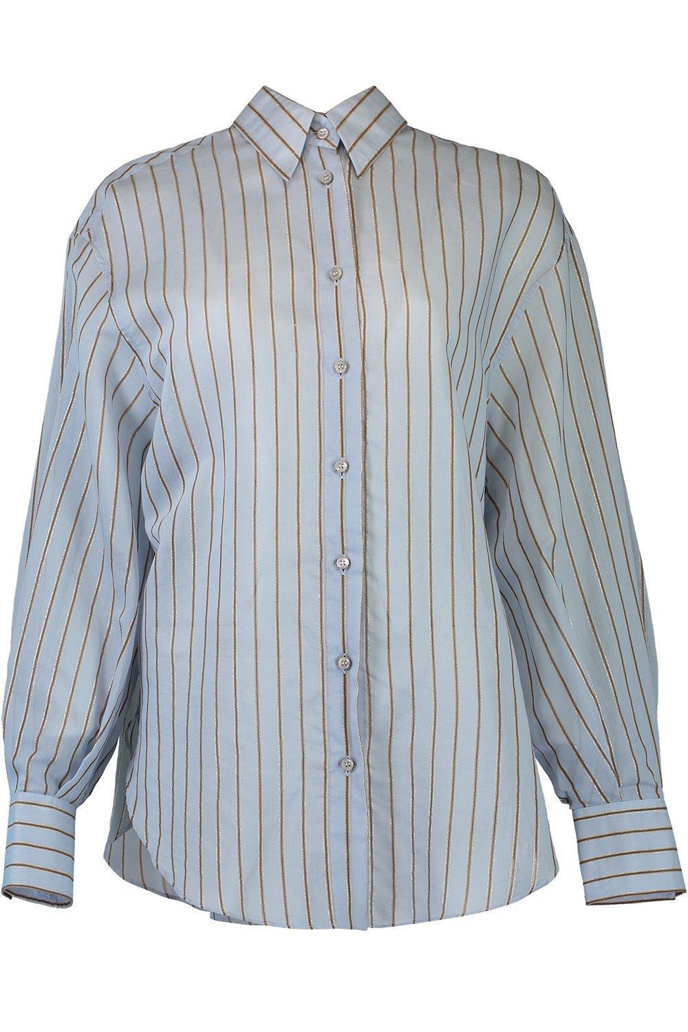 Brunello Cucinelli metallic stripe shirt in cloud.