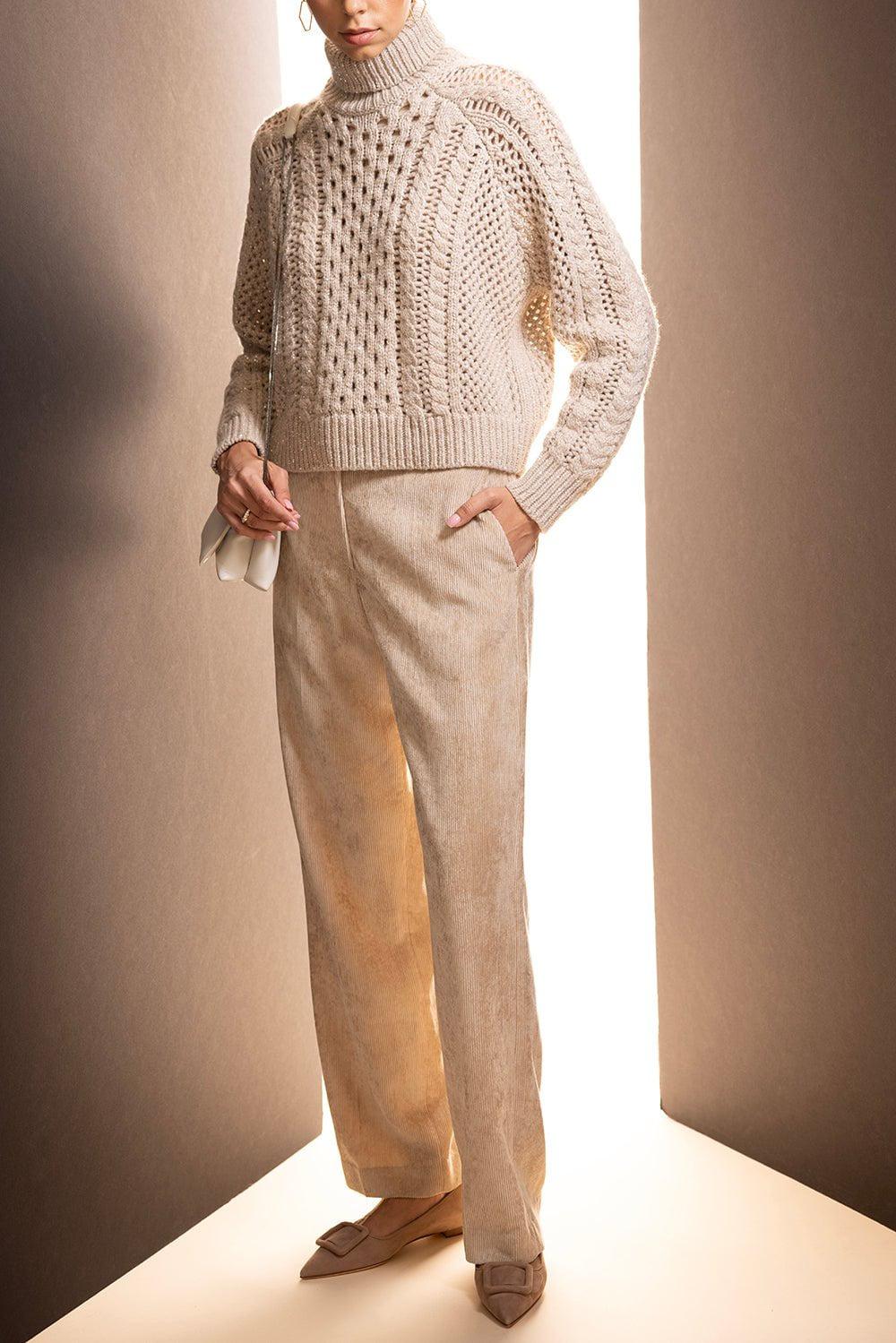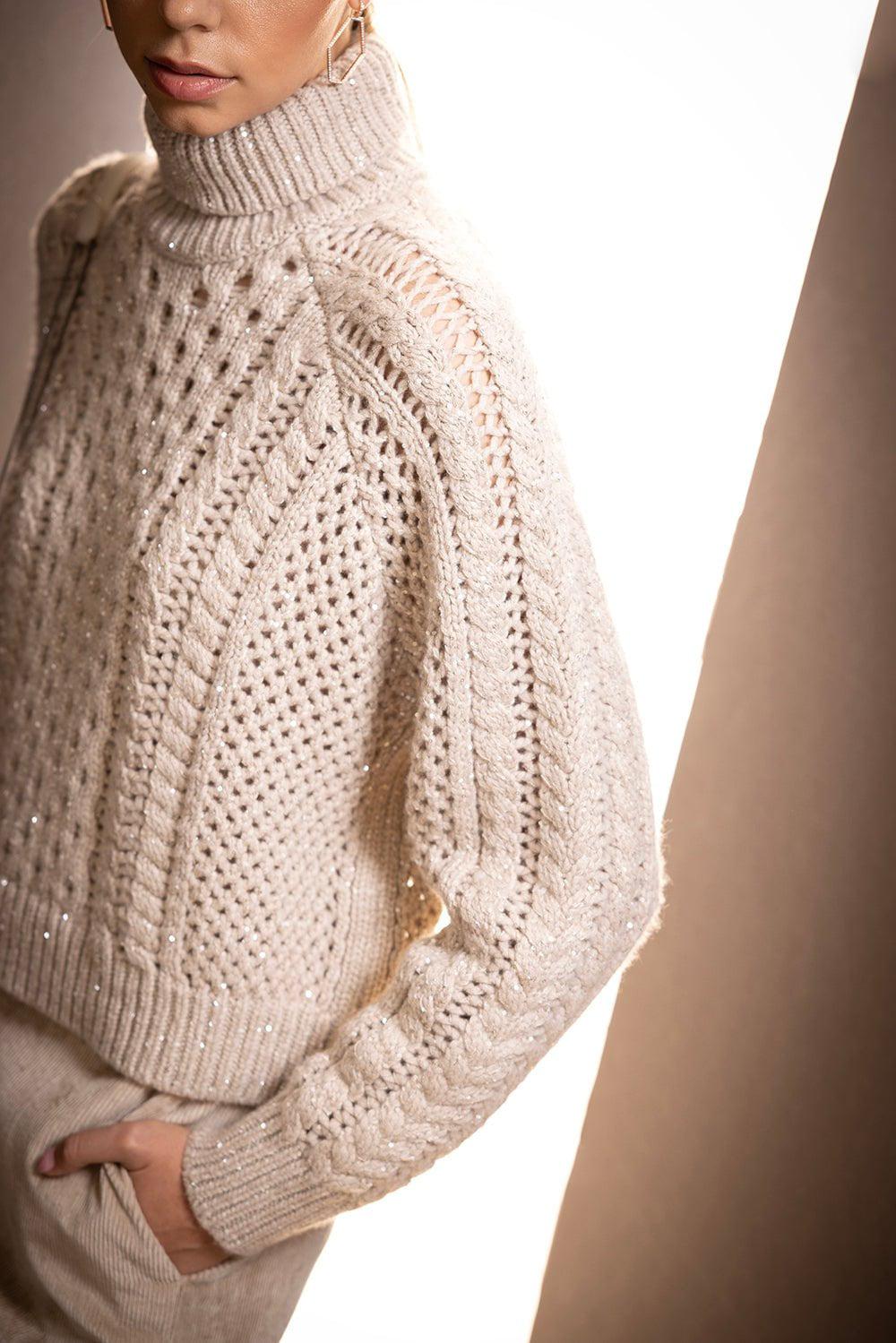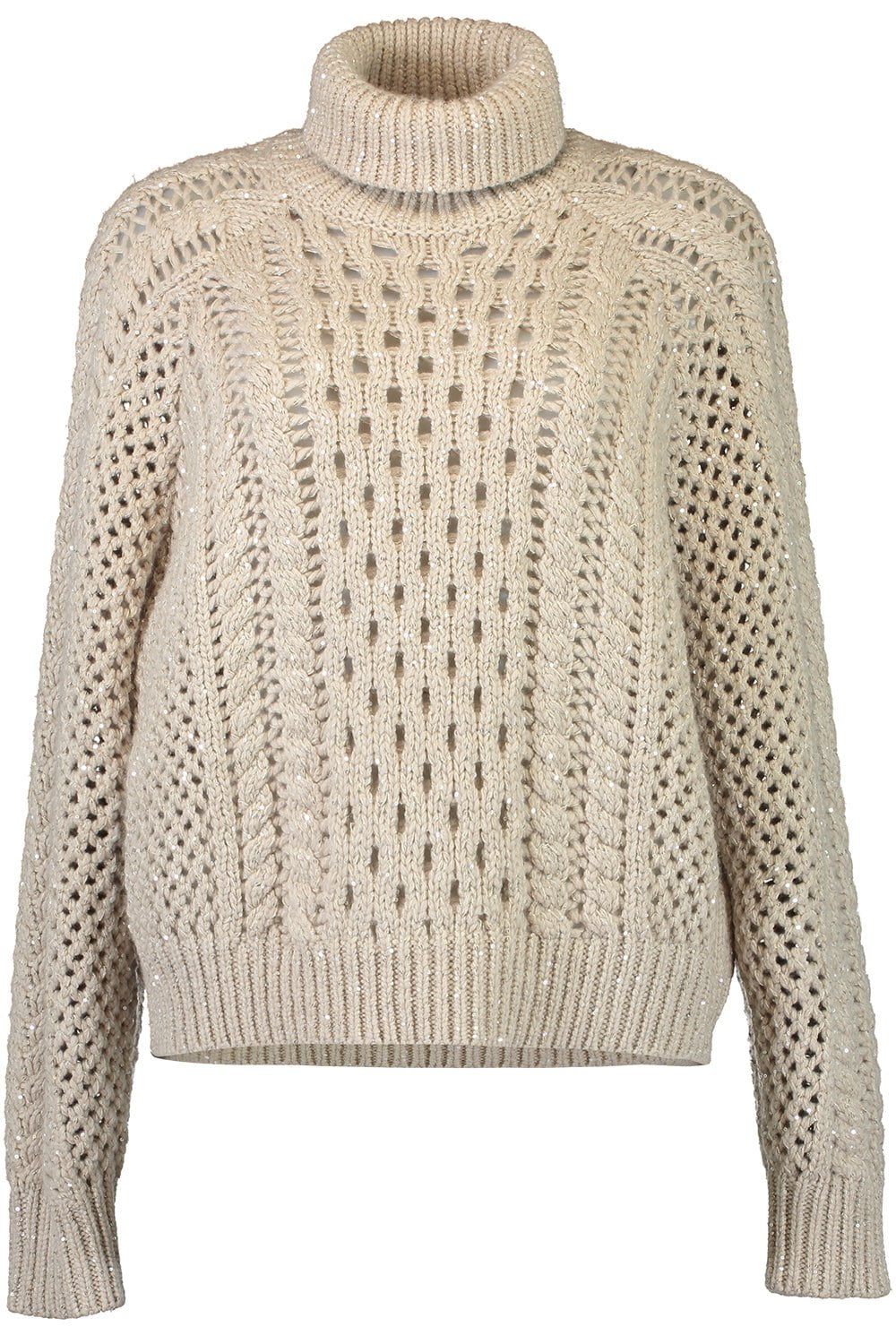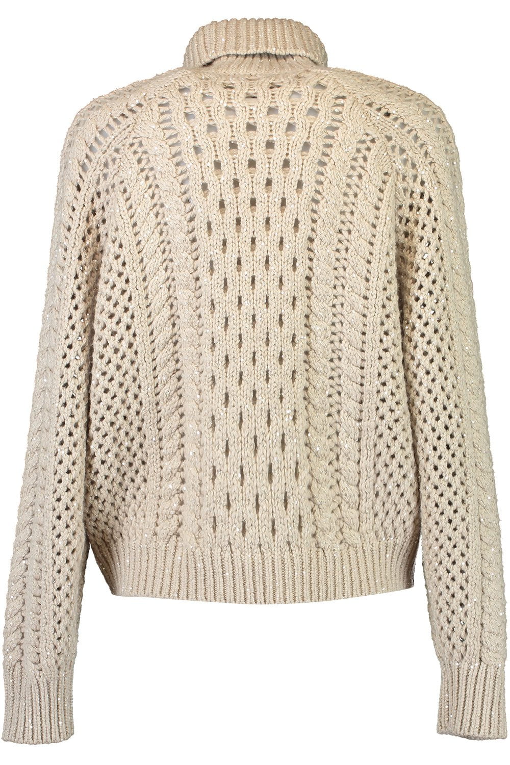 Brunello Cucinelli micro paillette turtleneck in feather/st racciatella.