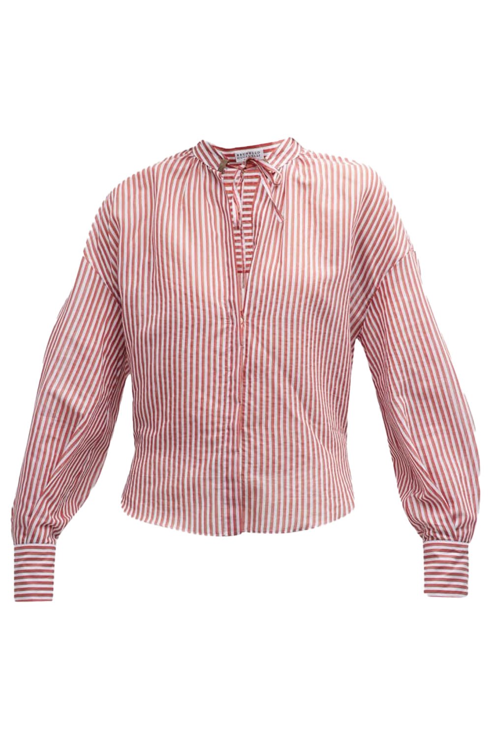 Brunello Cucinelli monili-trim peasant shirt in red/white.